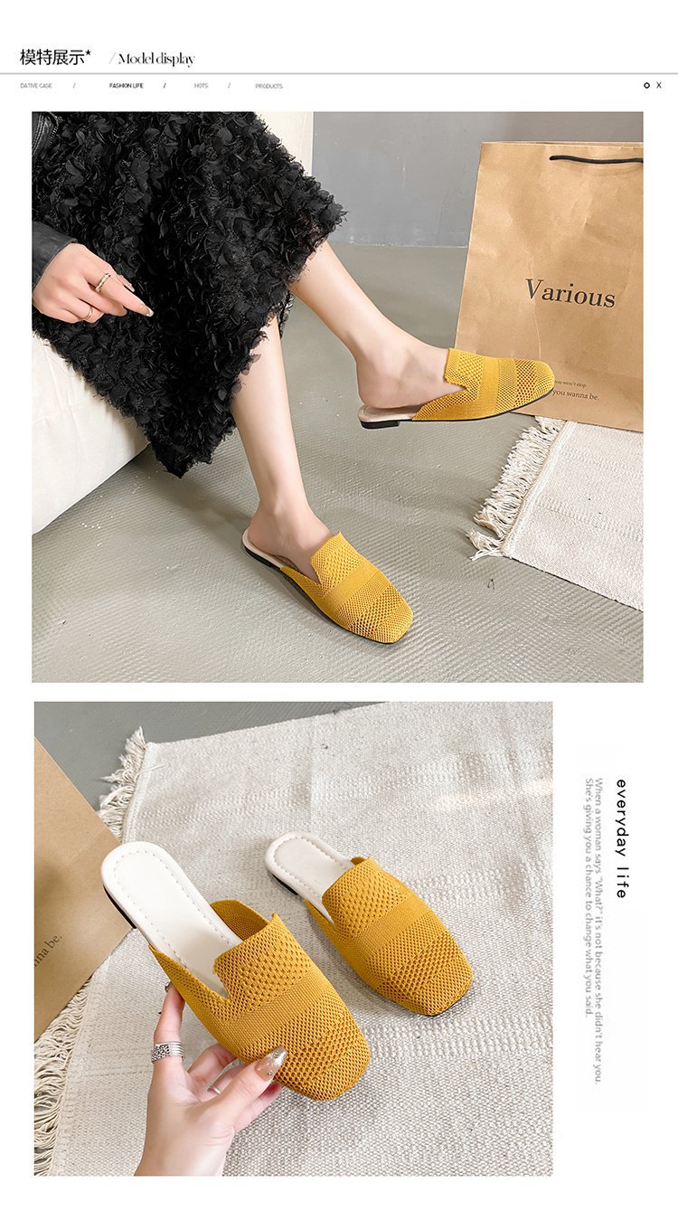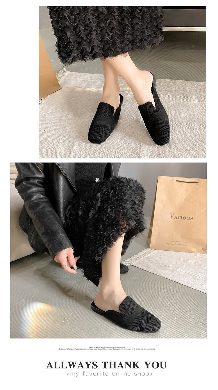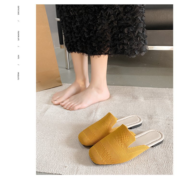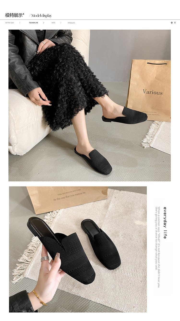 2025 여름 새로운 Baotou 하프 슬리퍼 스퀘어 헤드 짠 플랫 게으른 신발 플러스 사이즈 국경 캐주얼 여성 신발 도매스토어 가기