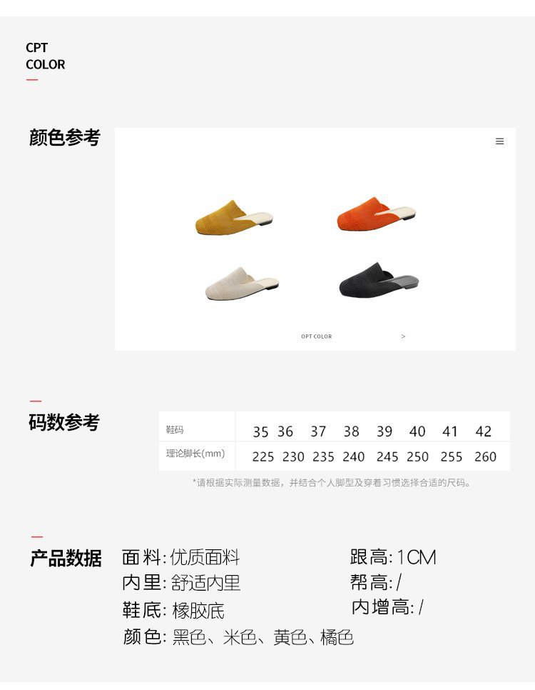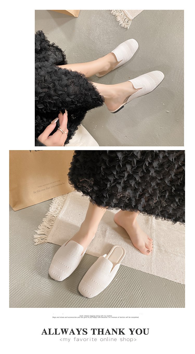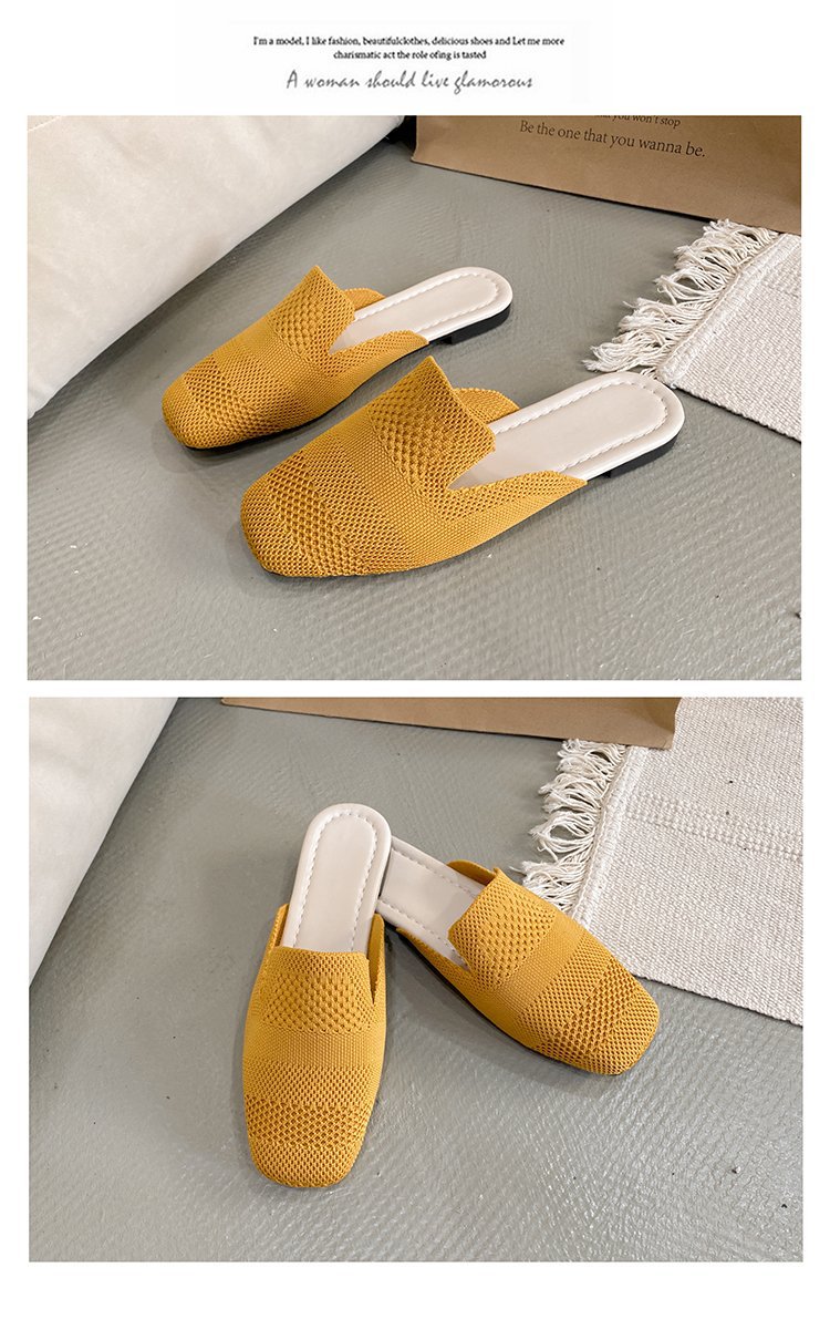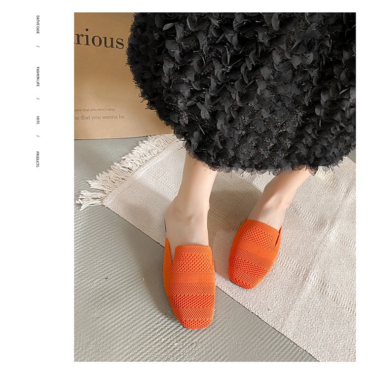 2025 여름 새로운 Baotou 하프 슬리퍼 스퀘어 헤드 짠 플랫 게으른 신발 플러스 사이즈 국경 캐주얼 여성 신발 도매스토어 가기