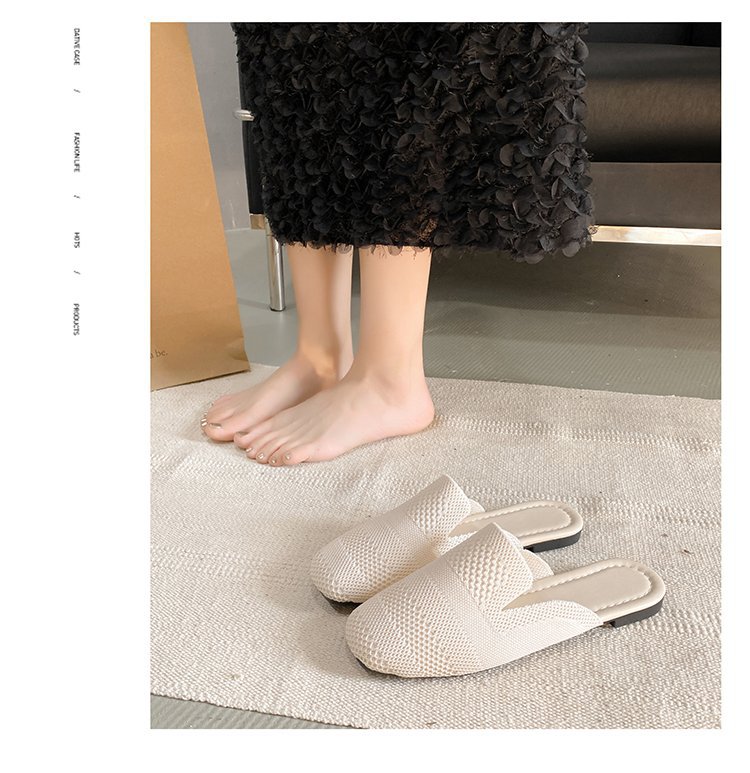 2025 여름 새로운 Baotou 하프 슬리퍼 스퀘어 헤드 짠 플랫 게으른 신발 플러스 사이즈 국경 캐주얼 여성 신발 도매