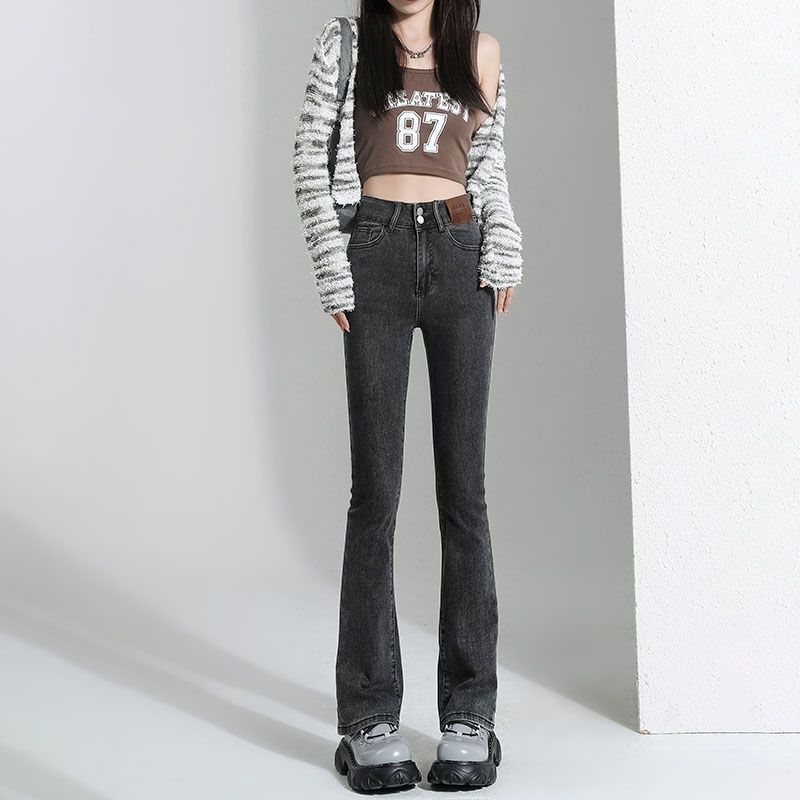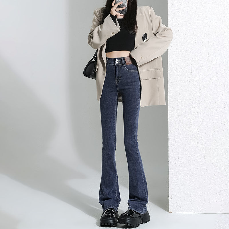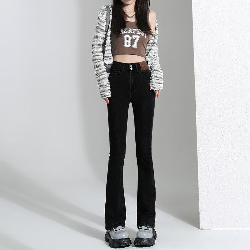 Micro-La Jeans 여성의 봄 2025 스트레칭 새로운 높은 허리 더블 버클 뜨거운 소녀 경적 바지 슬림