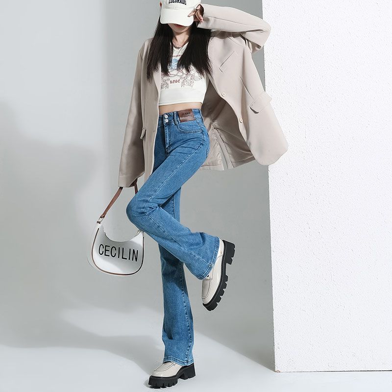 Micro-La Jeans 여성의 봄 2025 스트레칭 새로운 높은 허리 더블 버클 뜨거운 소녀 경적 바지 슬림스토어 가기