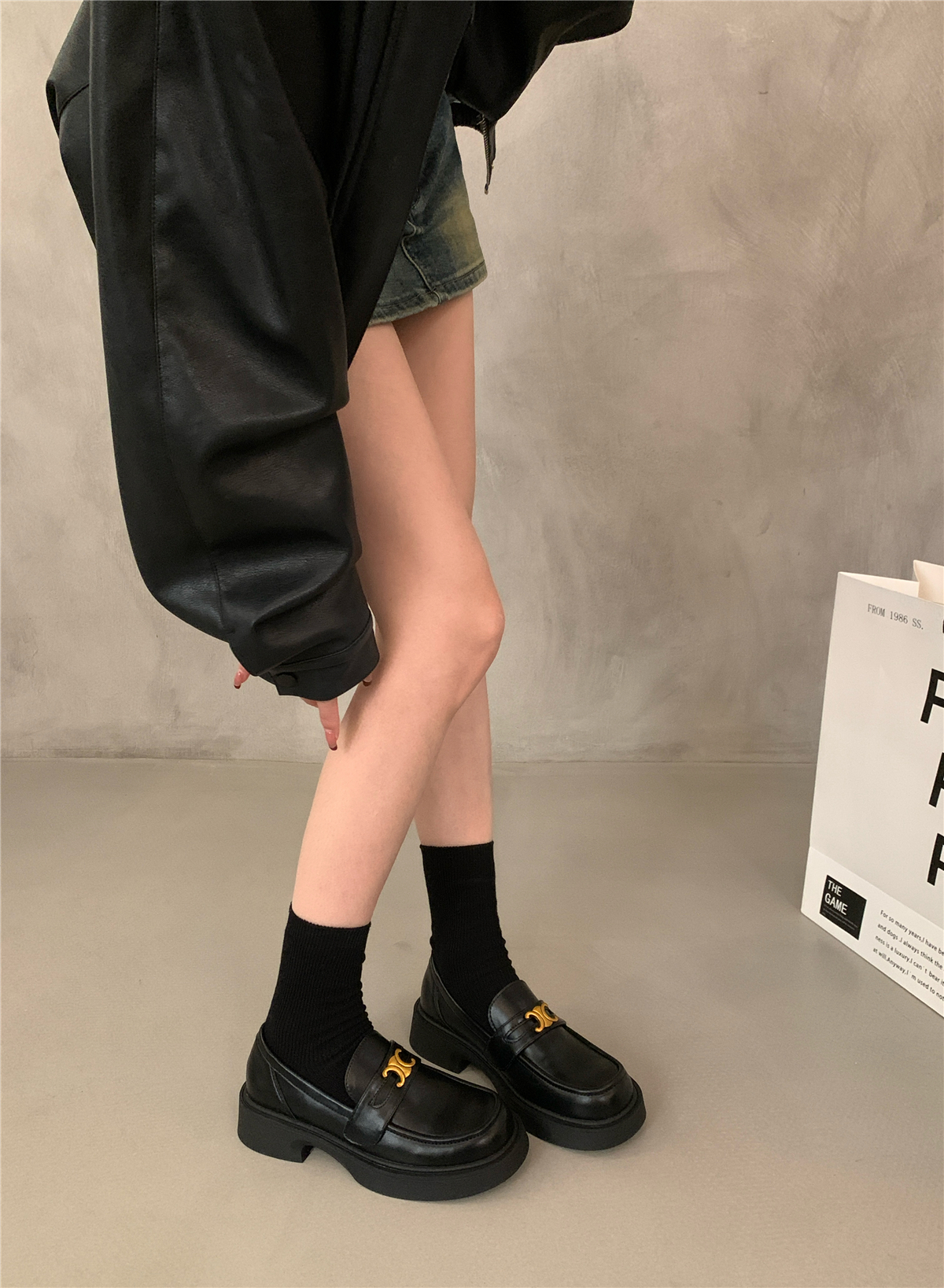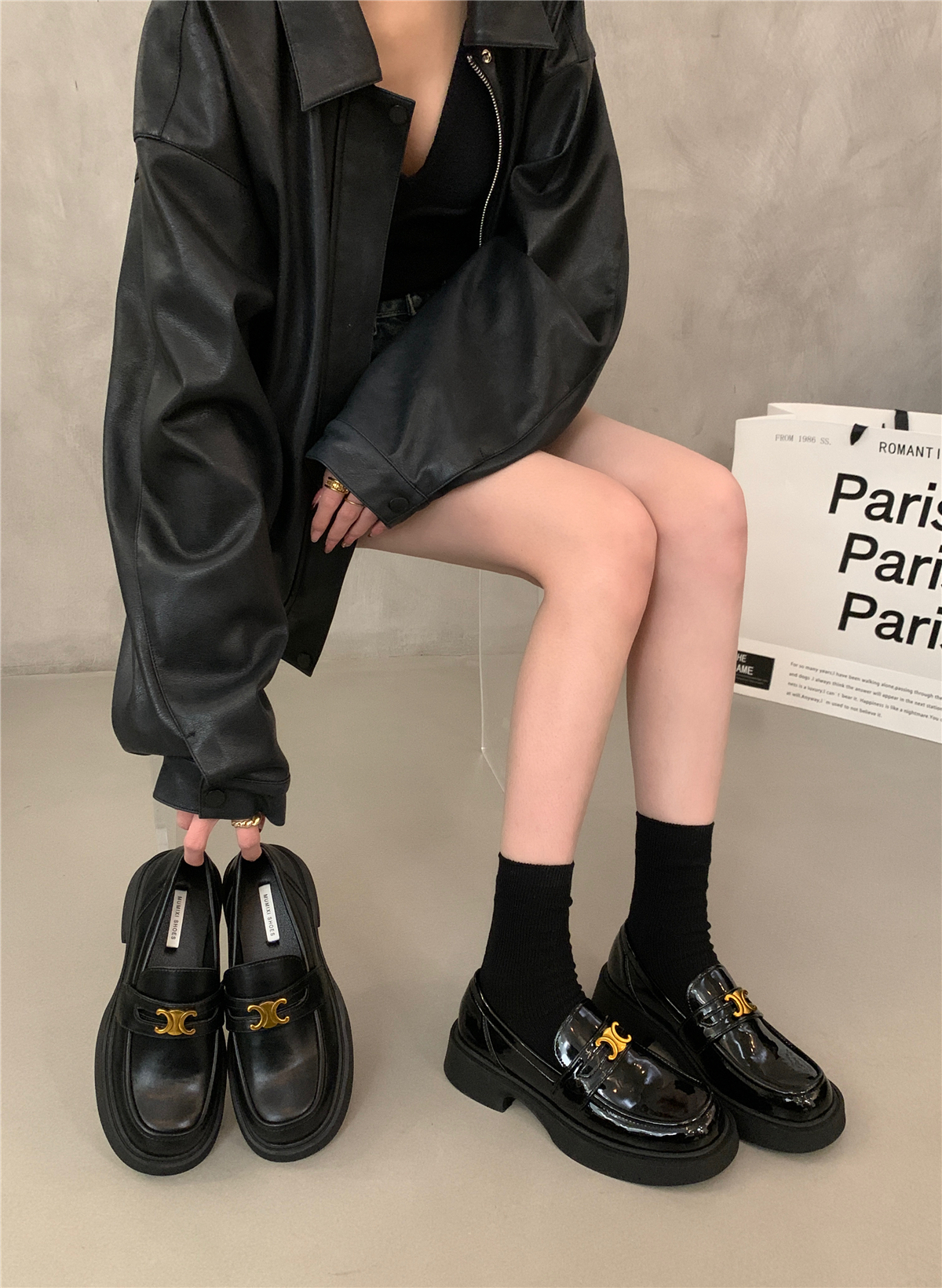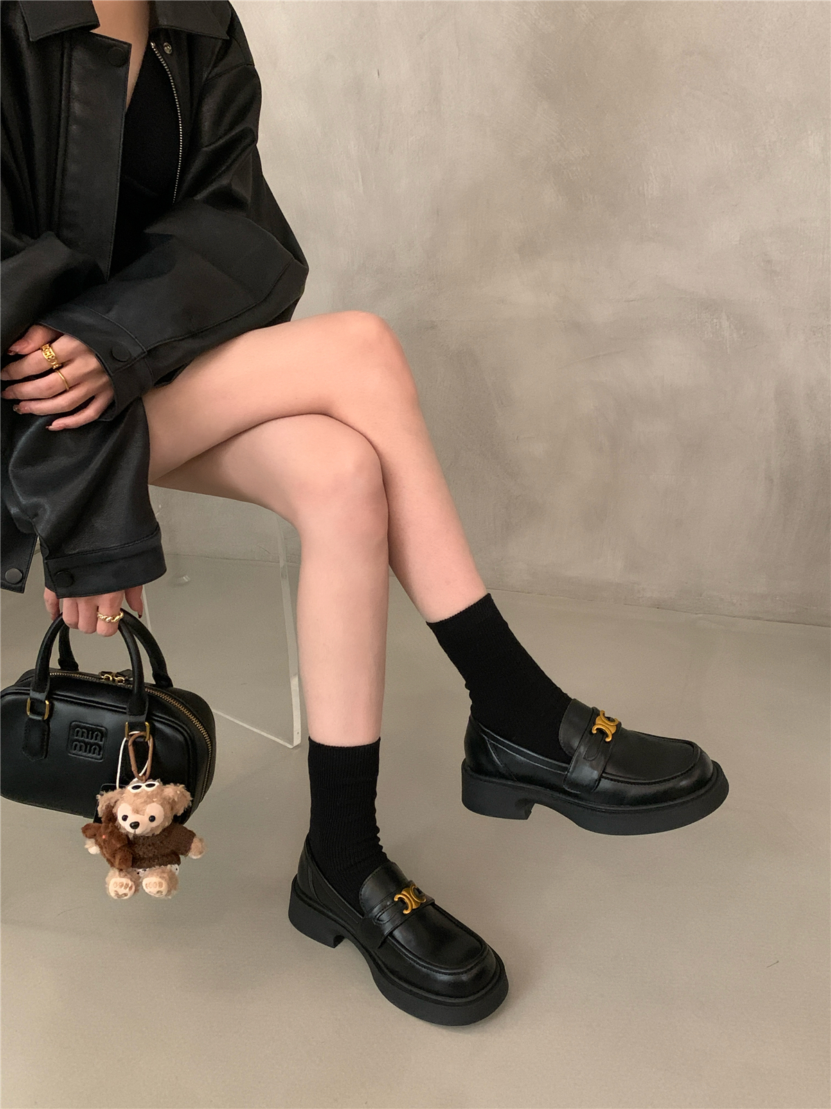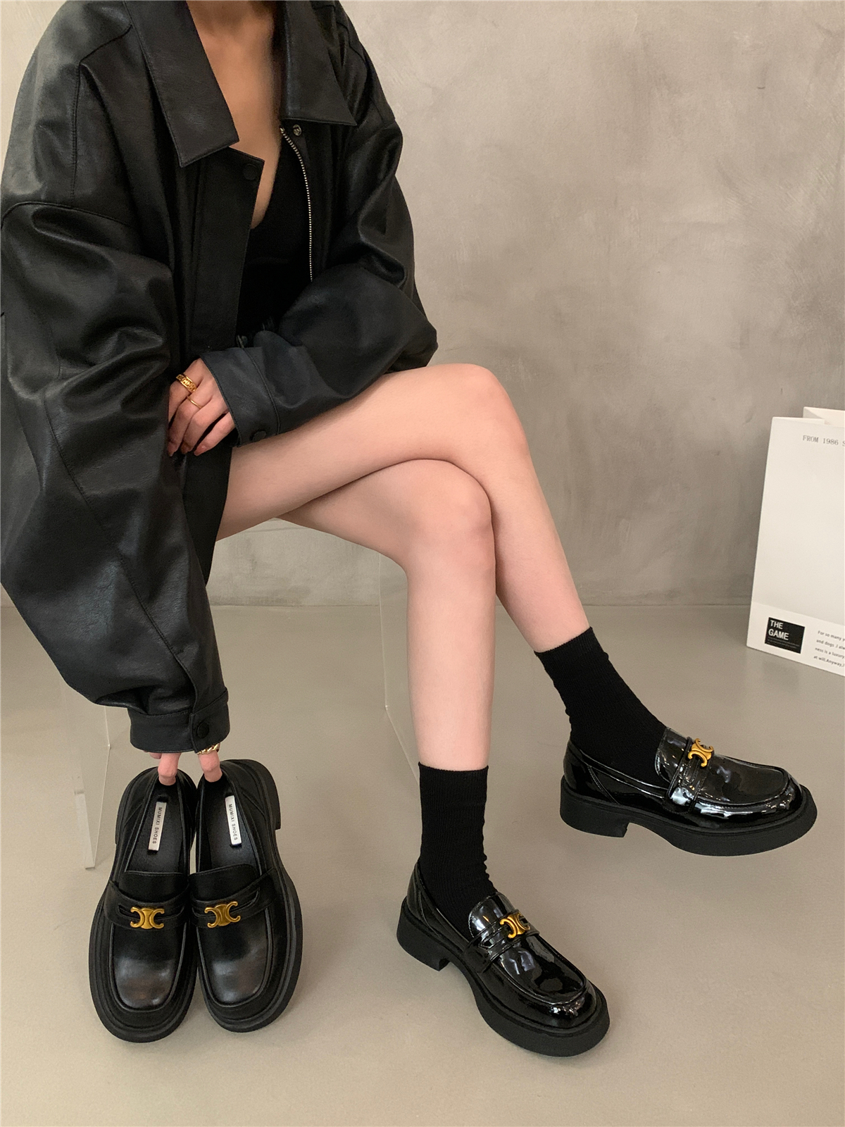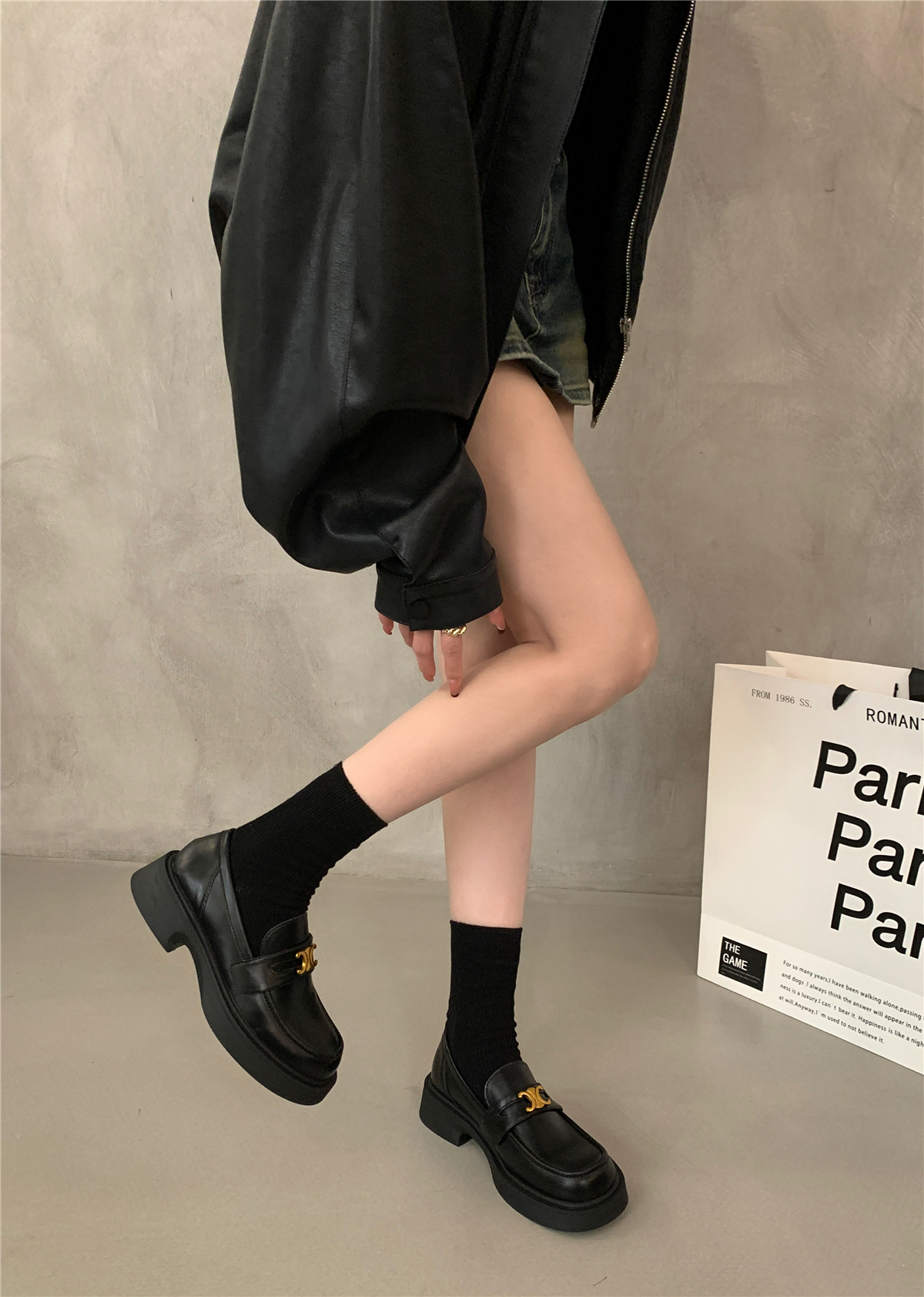 두꺼운 바닥 레트로 영국 스타일 가죽 신발 여성 신발 2025 새로운 봄 슬립 온 올 매치 블랙 Lefu 싱글 레이어 신발스토어 가기