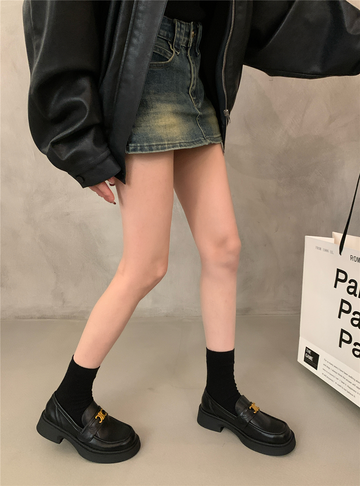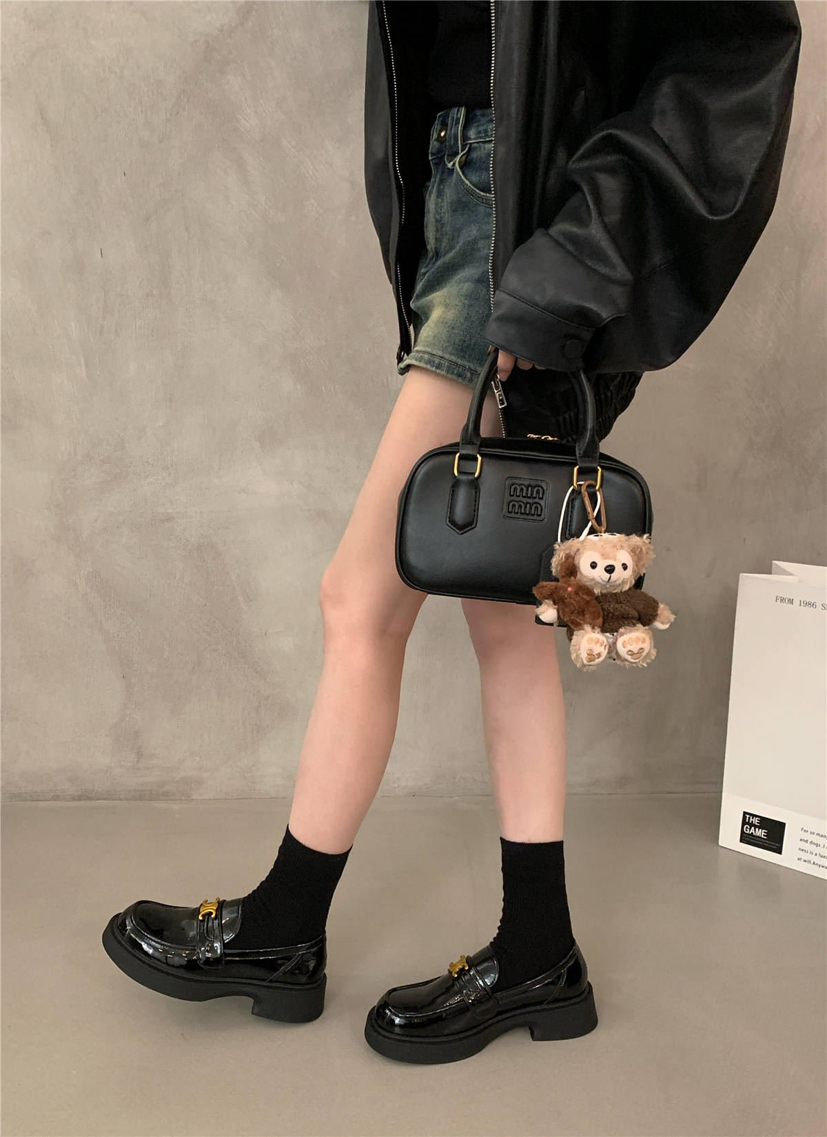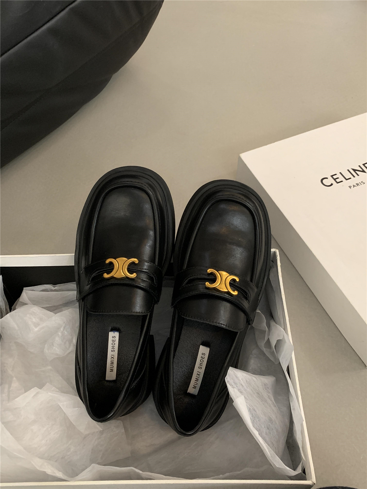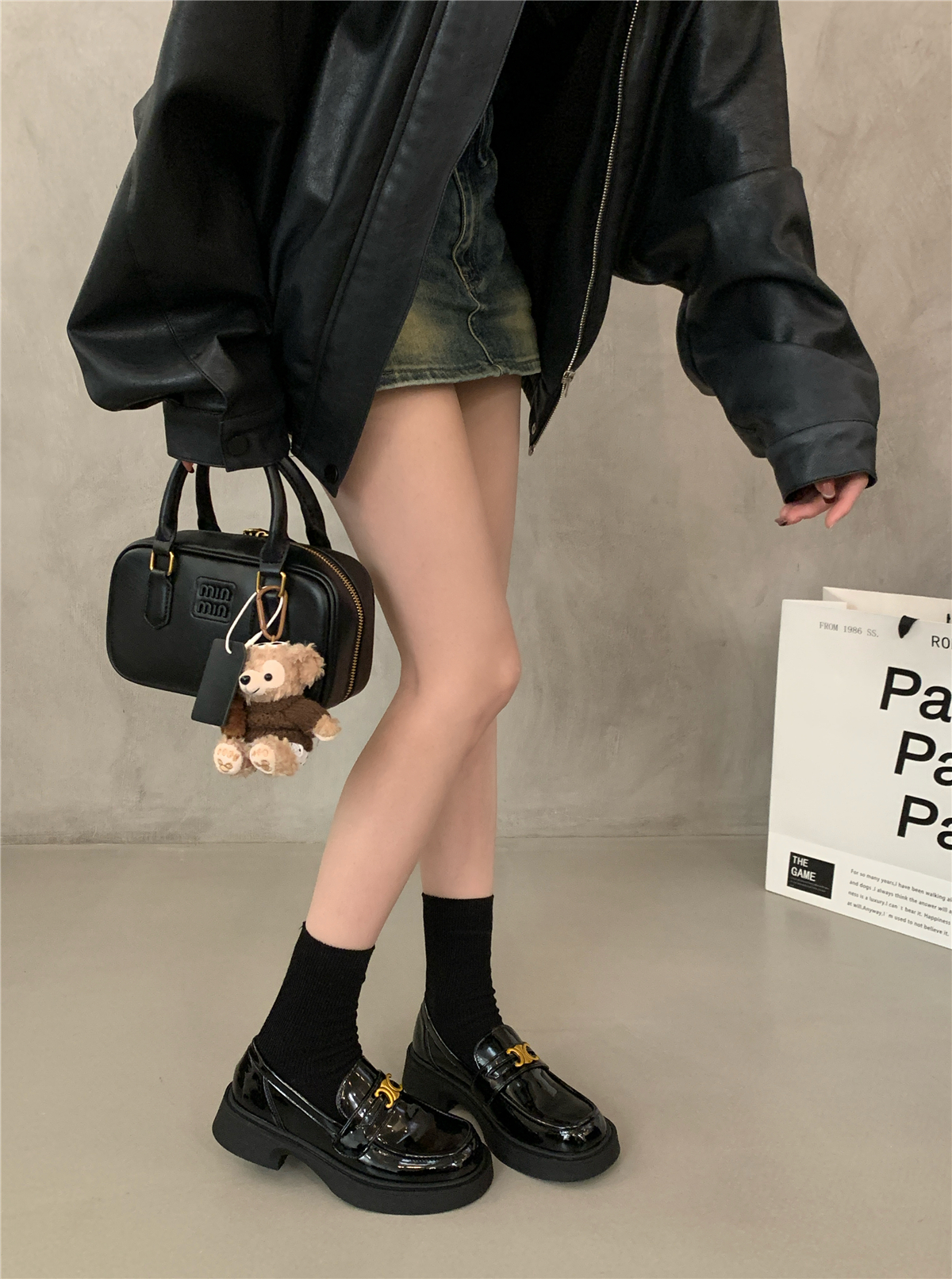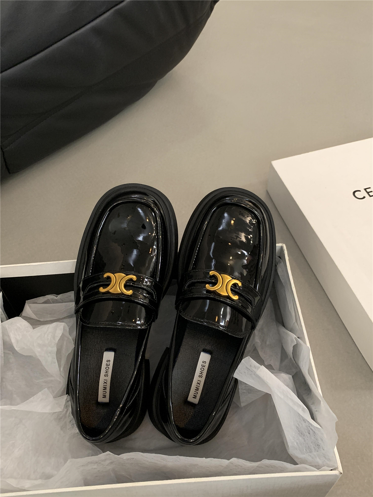 두꺼운 바닥 레트로 영국 스타일 가죽 신발 여성 신발 2025 새로운 봄 슬립 온 올 매치 블랙 Lefu 싱글 레이어 신발스토어 가기