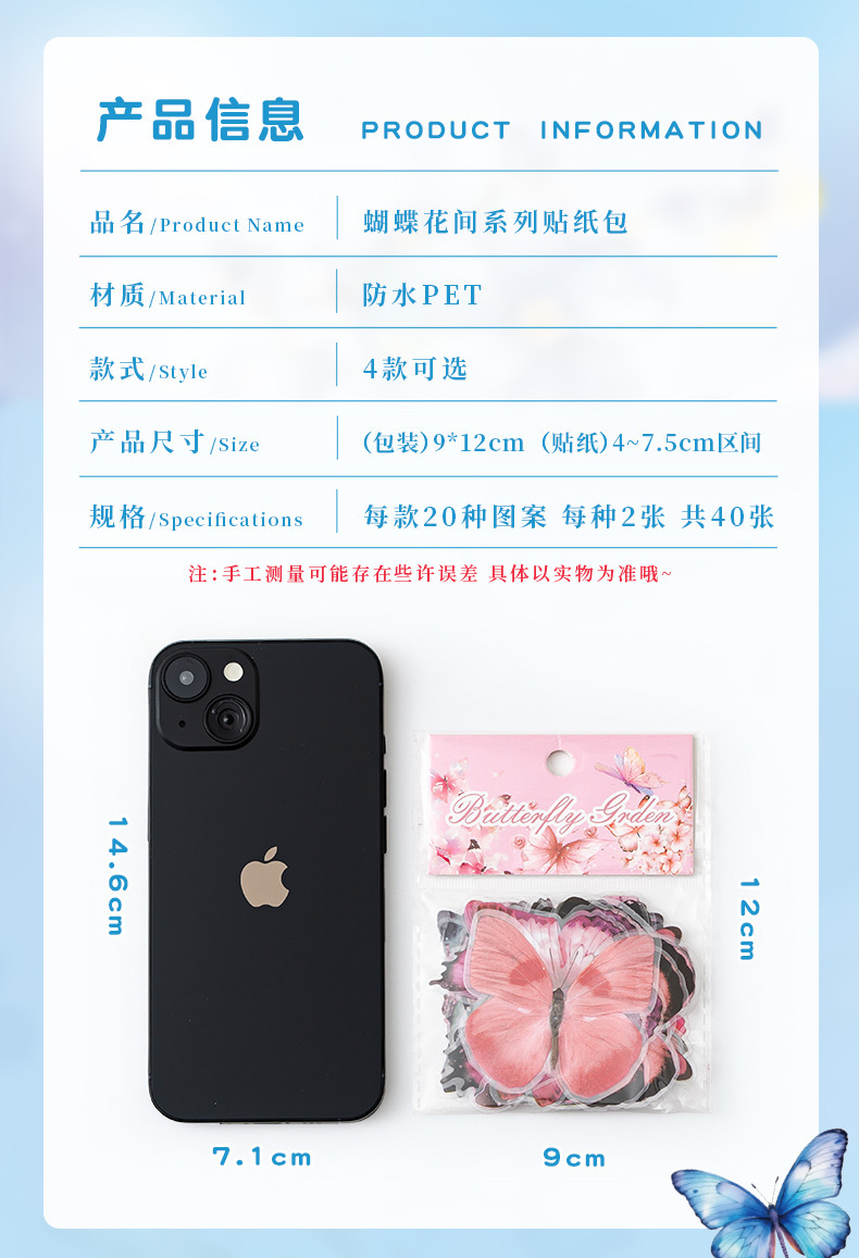 나비 꽃 방 애완 동물 스티커 팩 창조적 인 손 계정 장식 구아 카드 풍경 기본 콜라주 손 계정 소재 스티커스토어 가기