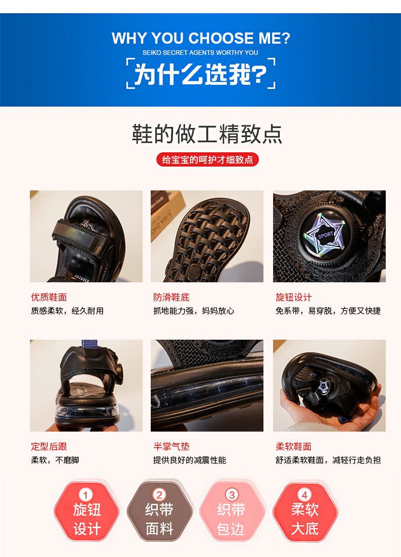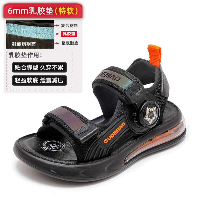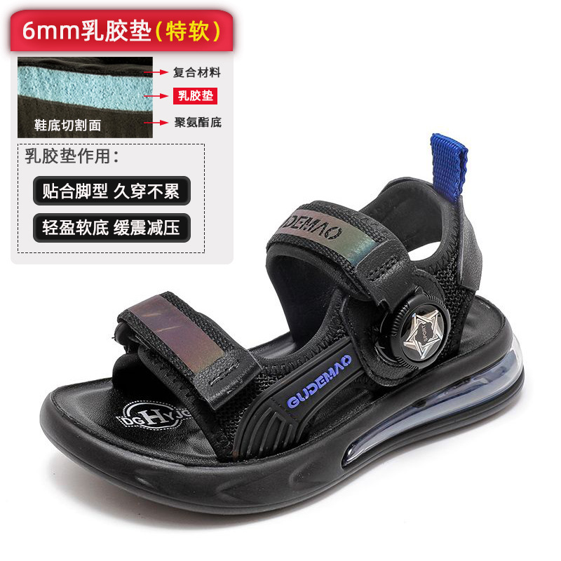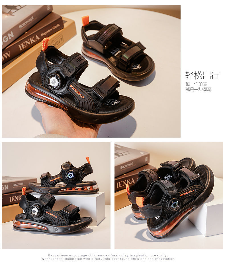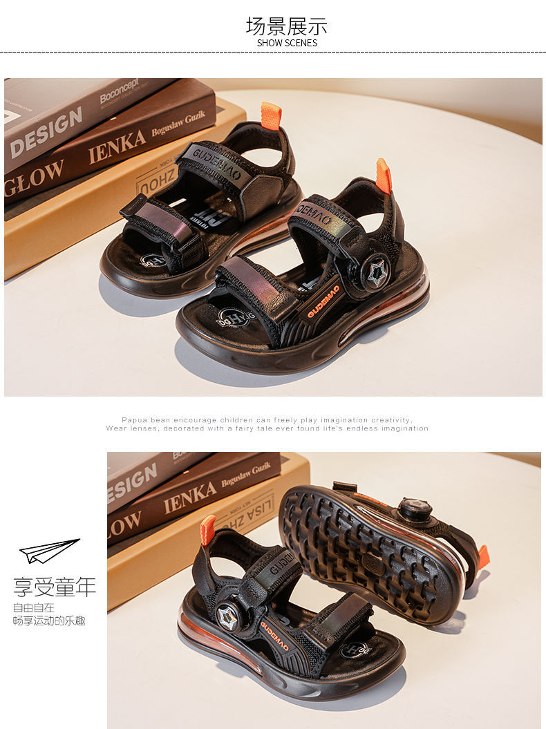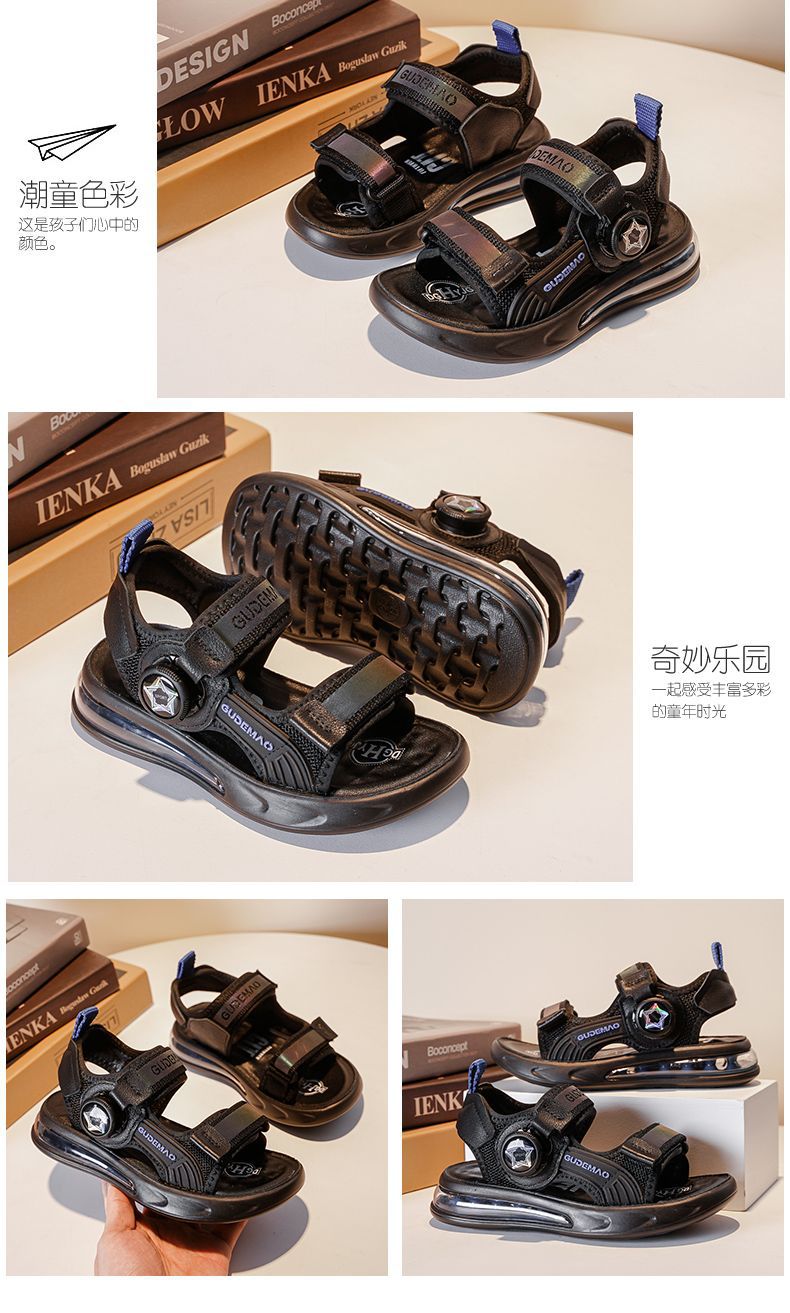 소년 샌들 여름 2025 새로운 소프트 단독 미끄럼 방지 어린이 스위블 버튼 패션 오픈 발가락 소년 비치 슈즈