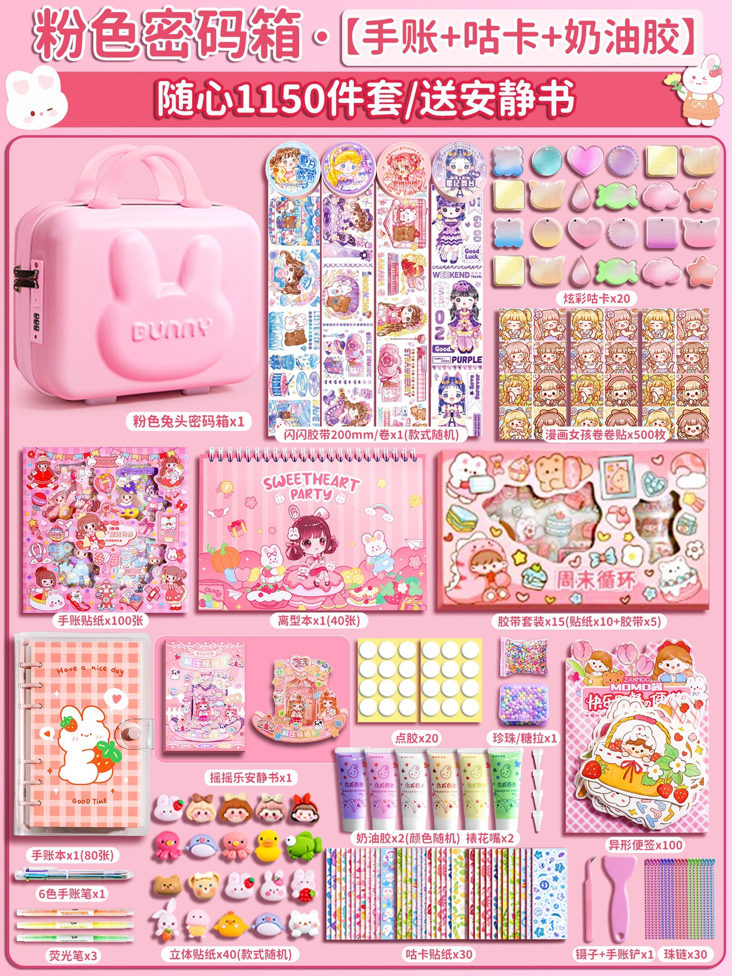 • [핸드북 세트 + 구카 세트 + 조용한 책] 꼬마토끼 비밀번호 상자 1150개 세트, 업그레이드된 비밀번호 잠금 장치