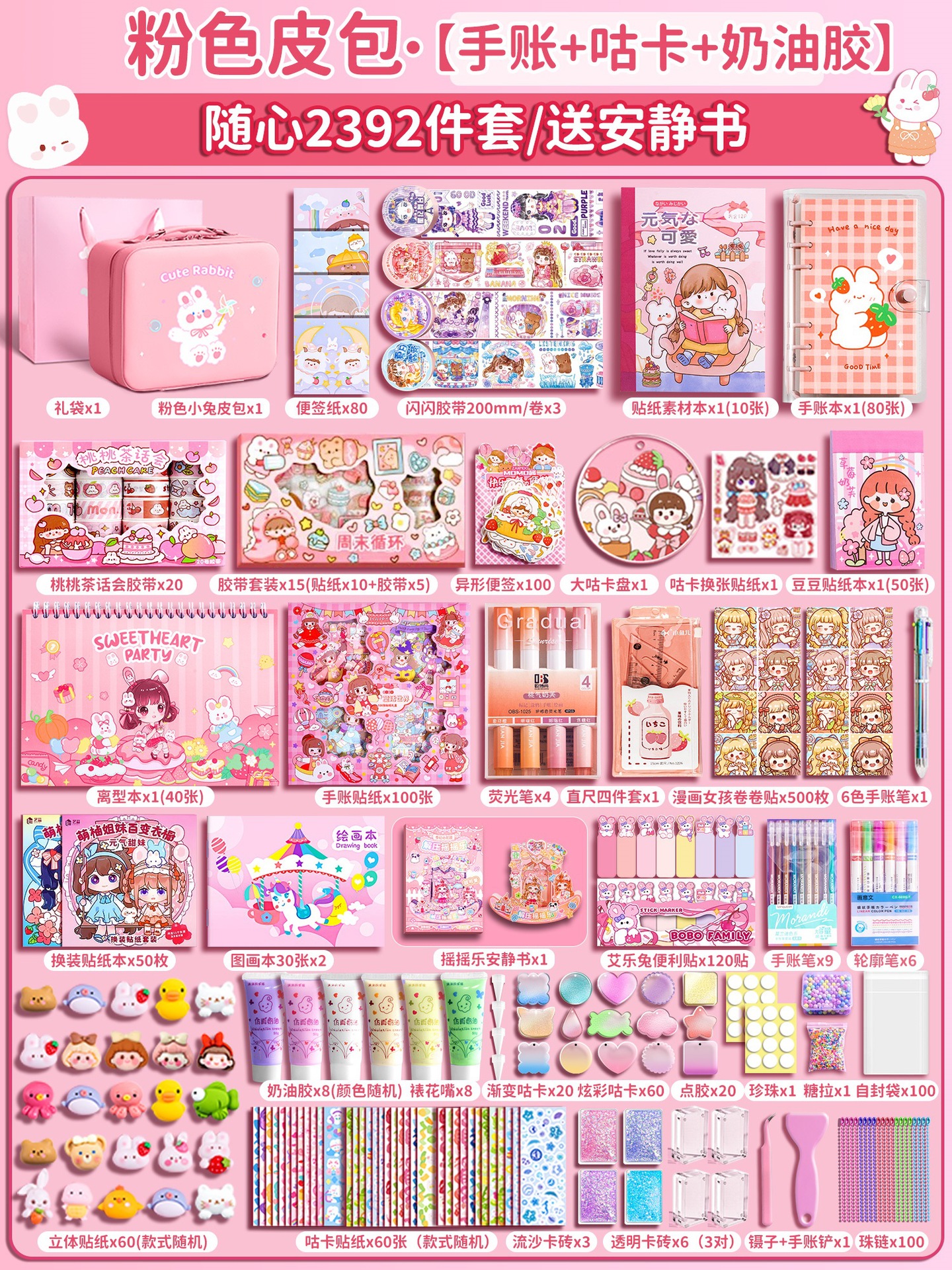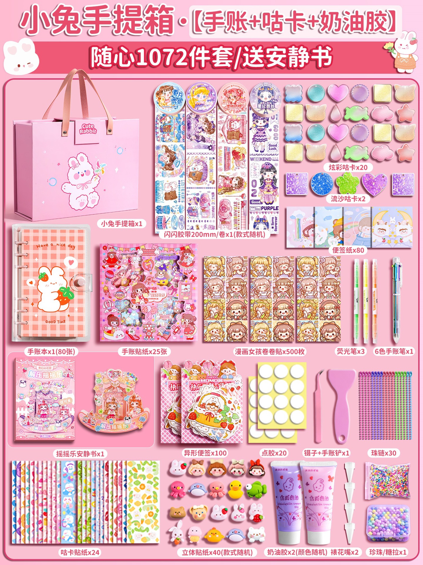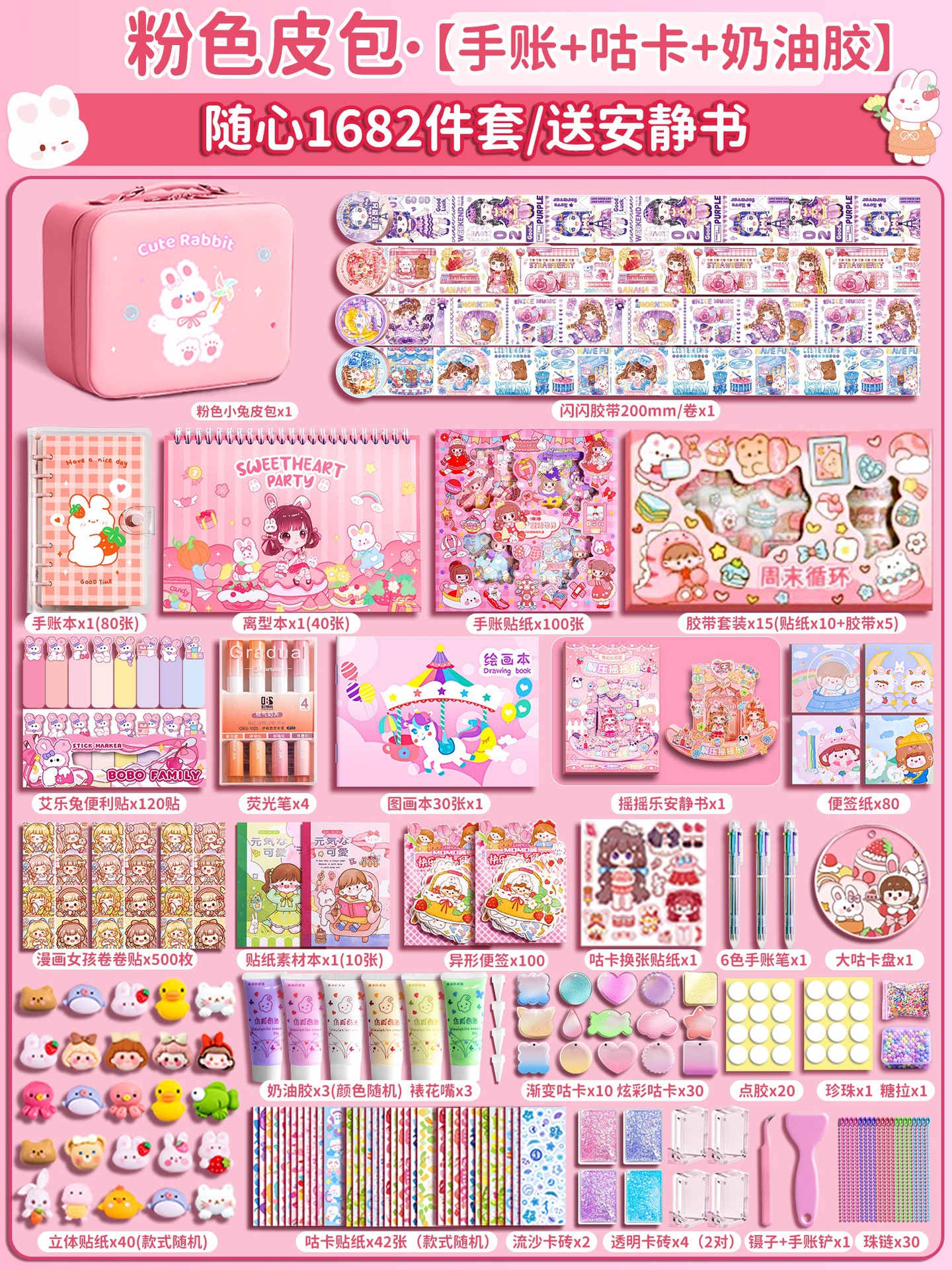 • [핸드북 + 구카 + 퀵샌드 카드브릭 + 콰이어트북] 토끼 여행가방 1682개 세트