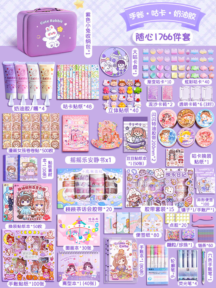 • [핸드북 + 구카 + 퀵샌드 카드브릭 + 콰이어트북] 토끼 여행가방 1766개 세트 퍼플 스타일