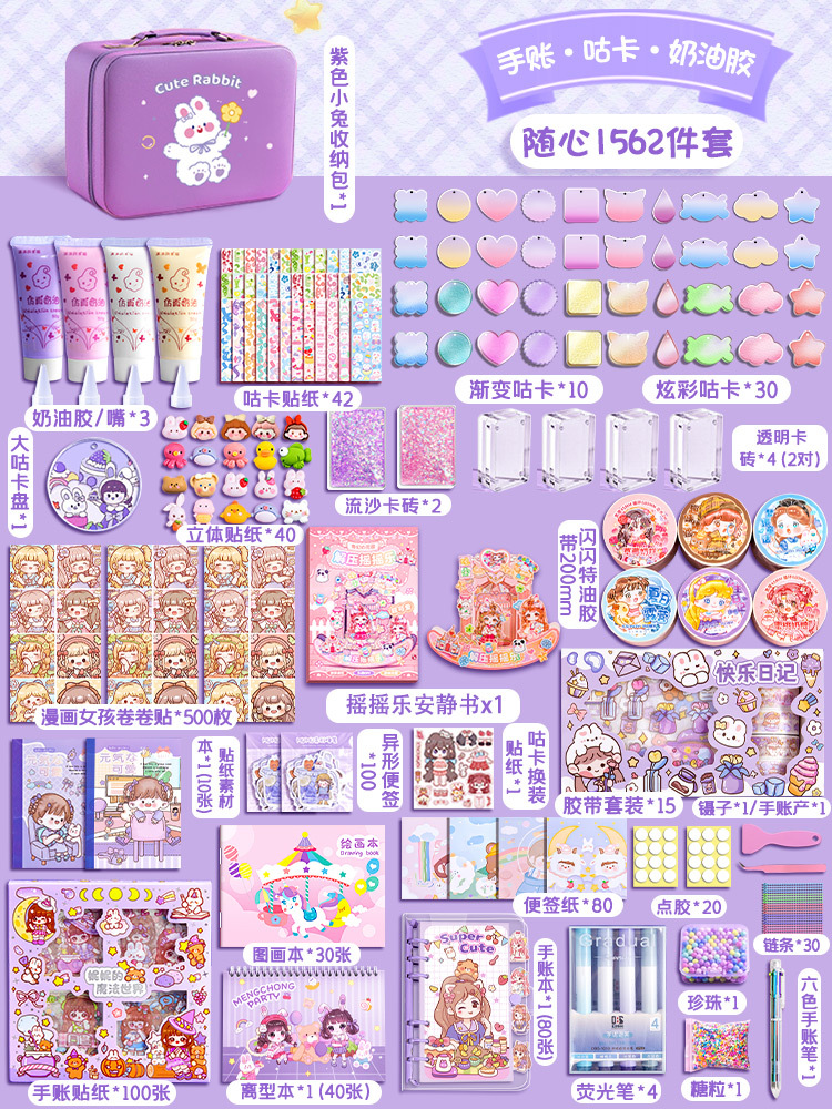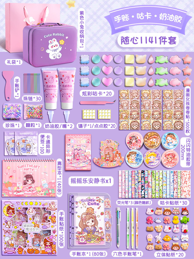 손 계정 세트 선물 상자 귀여운 높은 색 가치 손 계정 책 소녀의 장난감 크림 젤 구오 카드 세트 디럭스 에디션 스티커