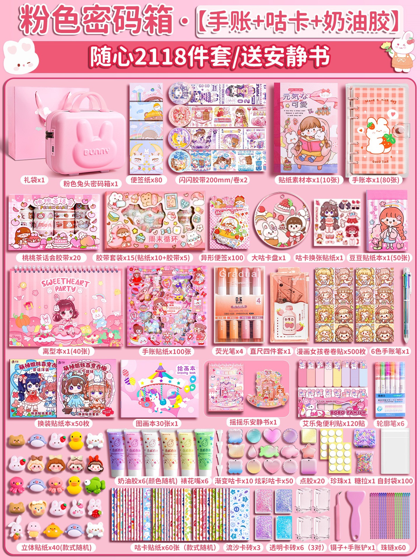 • [핸드북 + 구카 + 퀵샌드카드브릭 + 콰이어트북] 꼬마토끼 비밀번호박스 2118종 세트, 업그레이드된 비밀번호 잠금장치