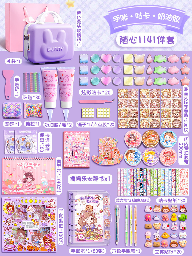 • [핸드북 세트 + 구카 세트 + 조용한 책] 토끼 여행가방 1141 피스 세트 퍼플 모델
