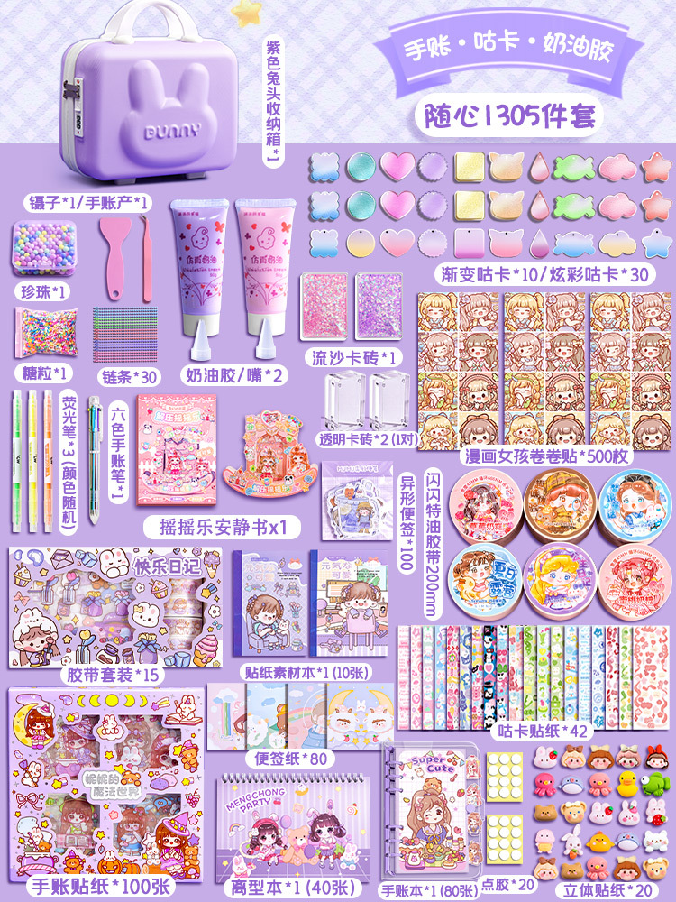 • [핸드북 + 구카 + 퀵샌드 카드브릭 + 콰이어트북] 버니 콤비네이션 박스 1305개 세트, 퍼플 모델, 업그레이드된 콤비네이션 자물쇠