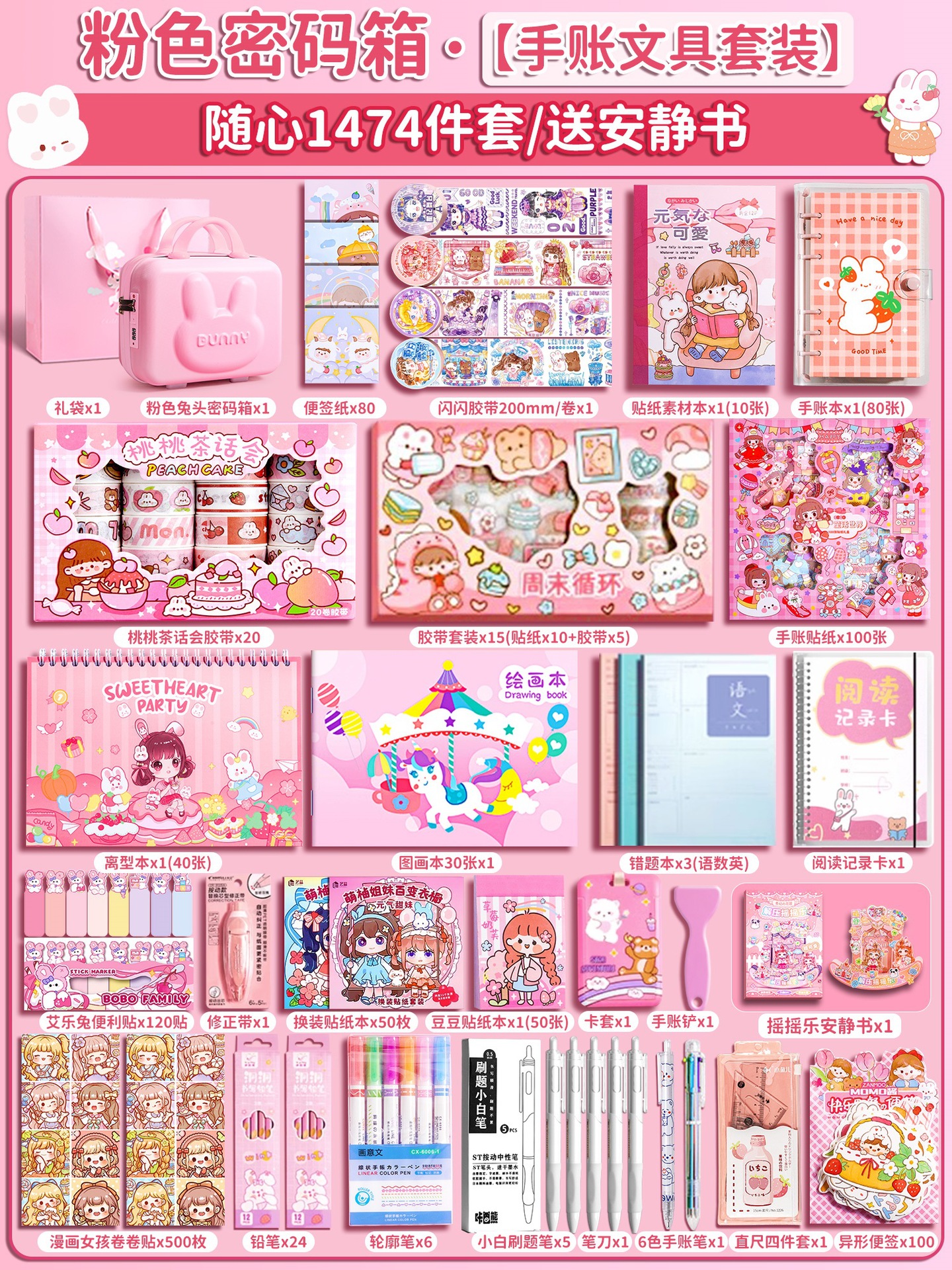 • [핸드북 세트 + 구카 세트 + 조용한 책] 작은 토끼 비밀번호 상자 1682개 세트, 업그레이드된 비밀번호 잠금 장치