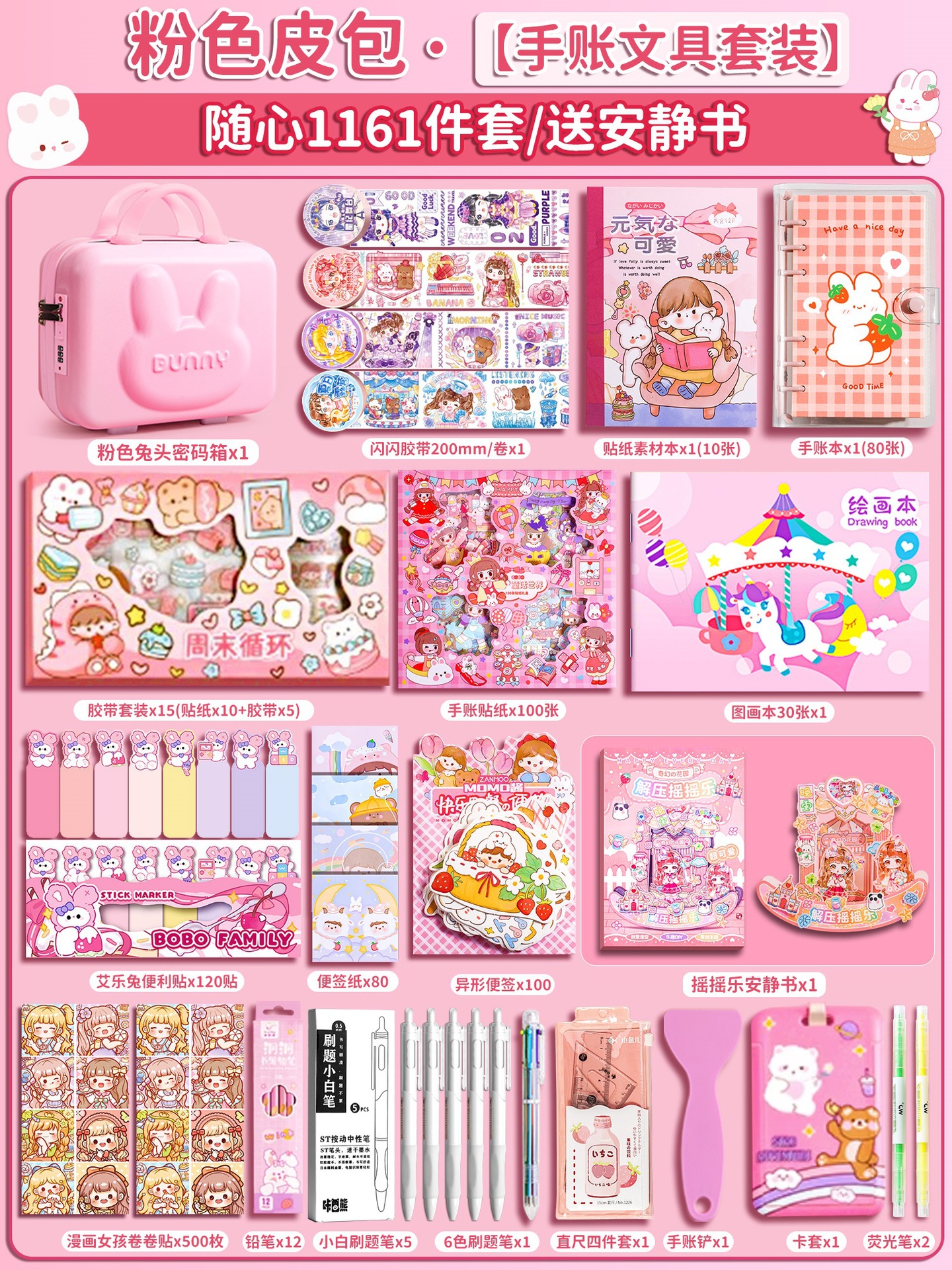 • 수첩 스타터 세트 963개(꼬마토끼 여행가방)