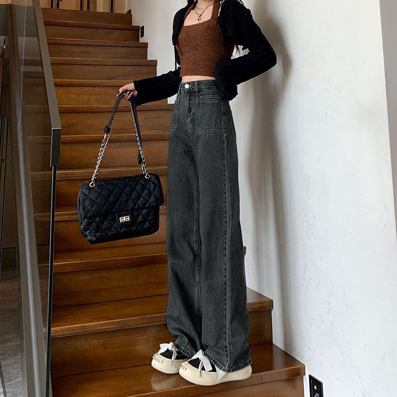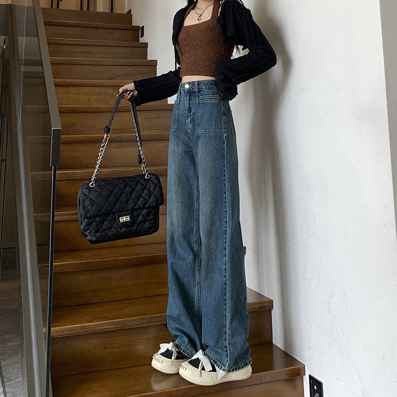 캐주얼 올 매치 스트레이트 청바지 핫 걸 여성 의류 2025 레트로 블루 하이 허리 와이드 레그 팬츠 세련된 아우터웨어스토어 가기