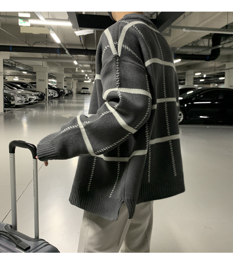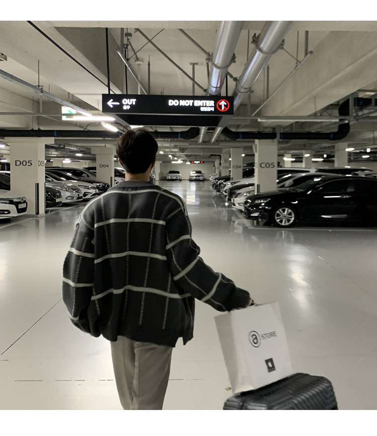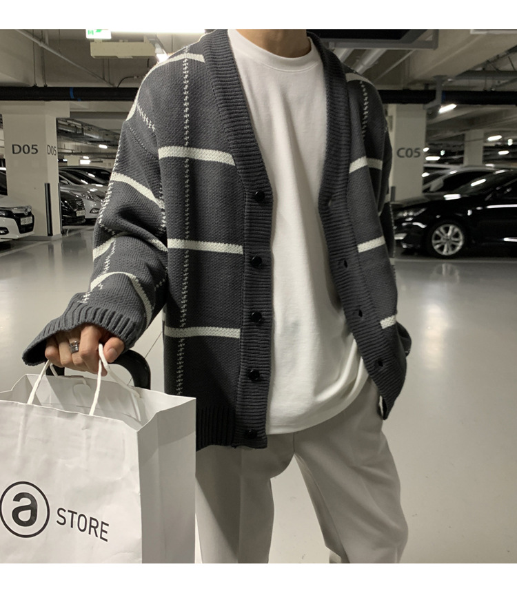 2025 봄과 가을 새로운 패션 카디건 남자 한국 스타일 영국 격자 무늬 줄무늬 스웨터 남자 V-넥 스웨터 탑스토어 가기