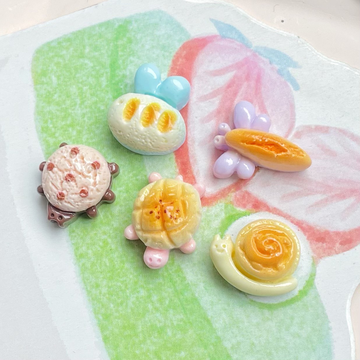 미니 만화 동물 빵 수지 액세서리 달팽이 잠자리 꿀벌 창조적 인 음식 놀이 액세서리 귀걸이 헤어핀 소재