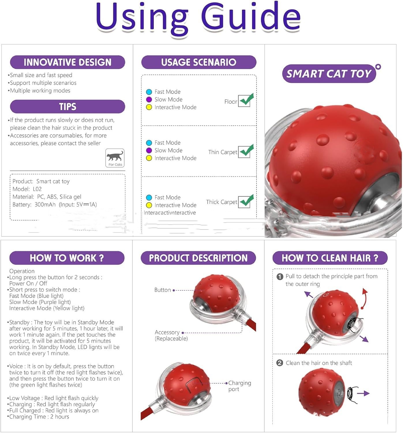 고양이 장난감 자동 고양이 티저 공 셀프 히, 지루함을 덜어주기 위해 지능형 고양이 갑작스런 공 새 노래 잠자리 꼬리스토어 가기