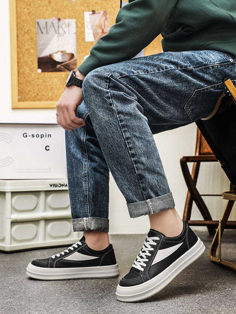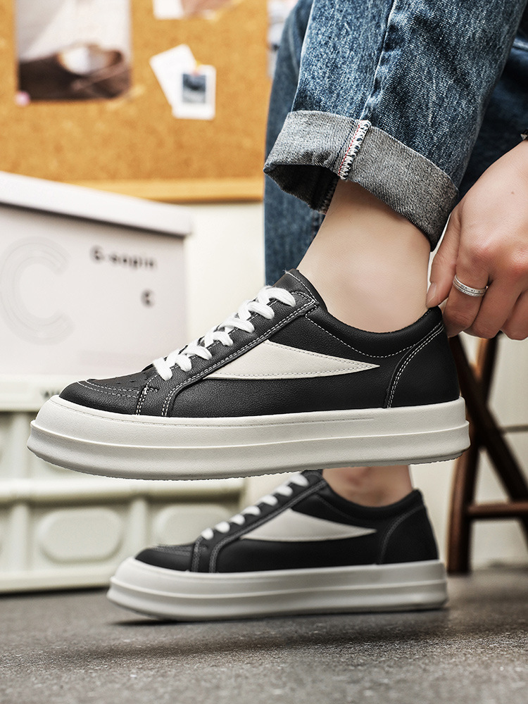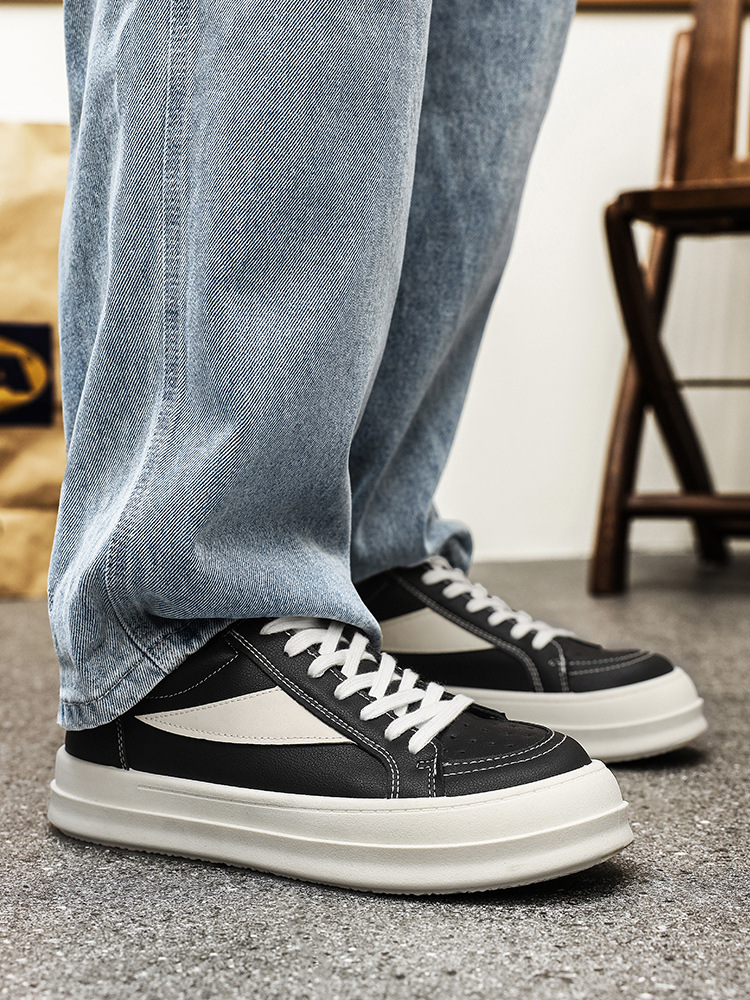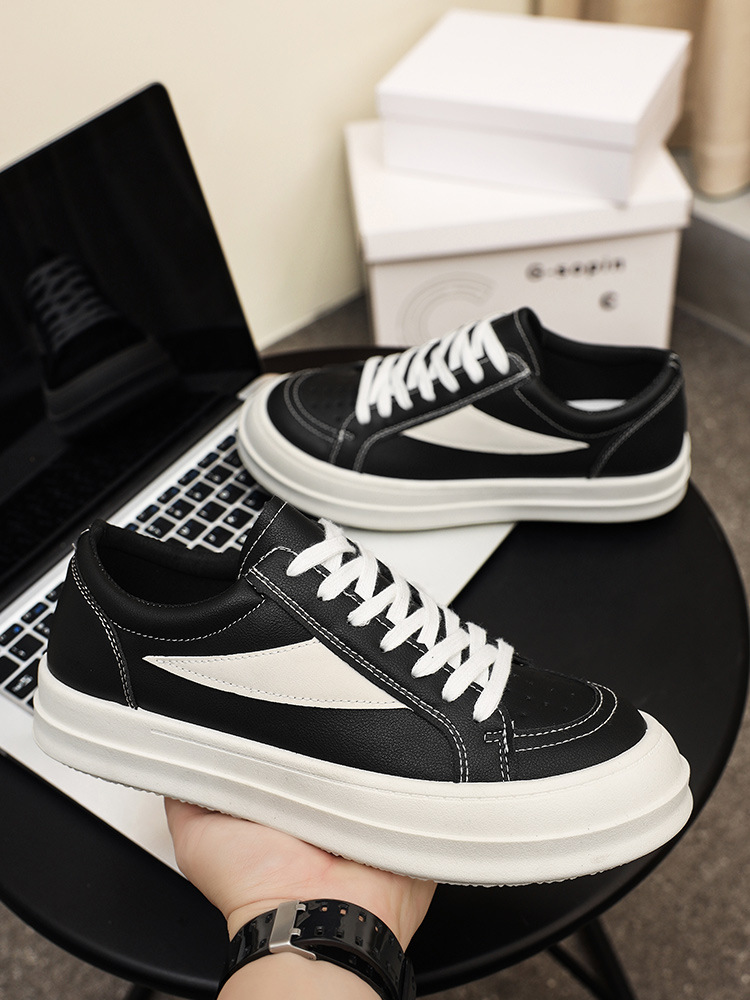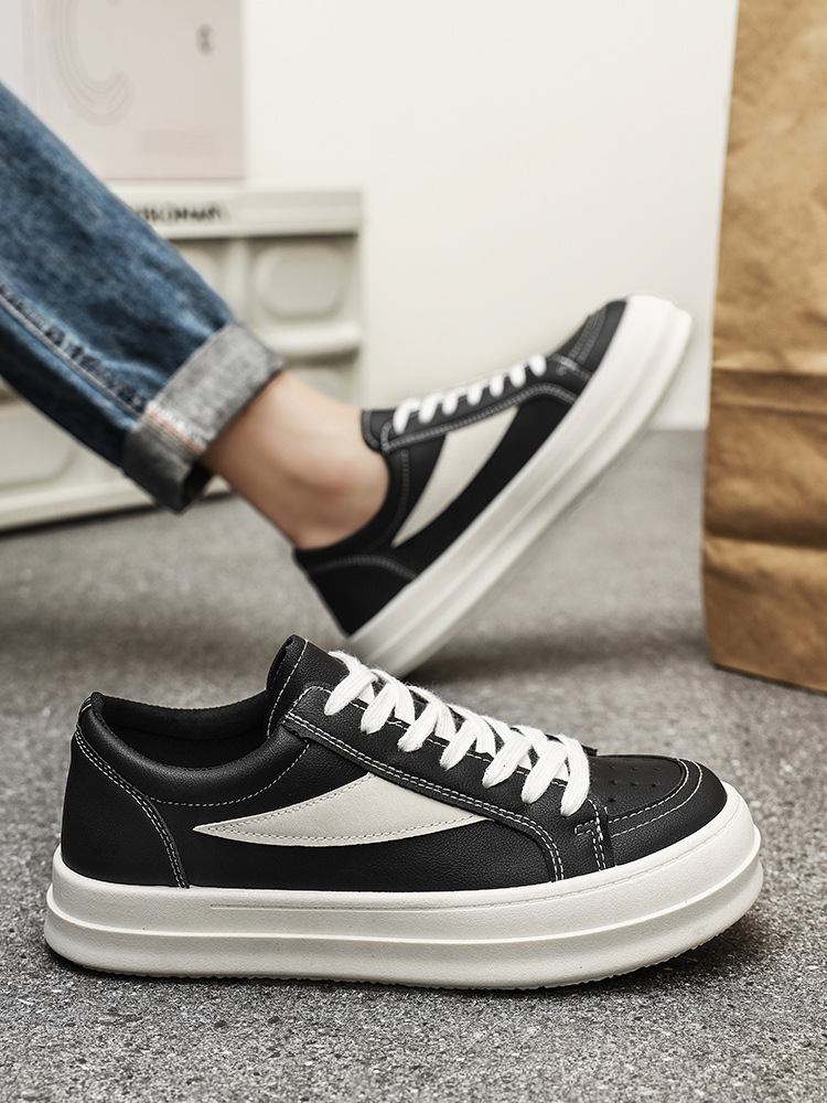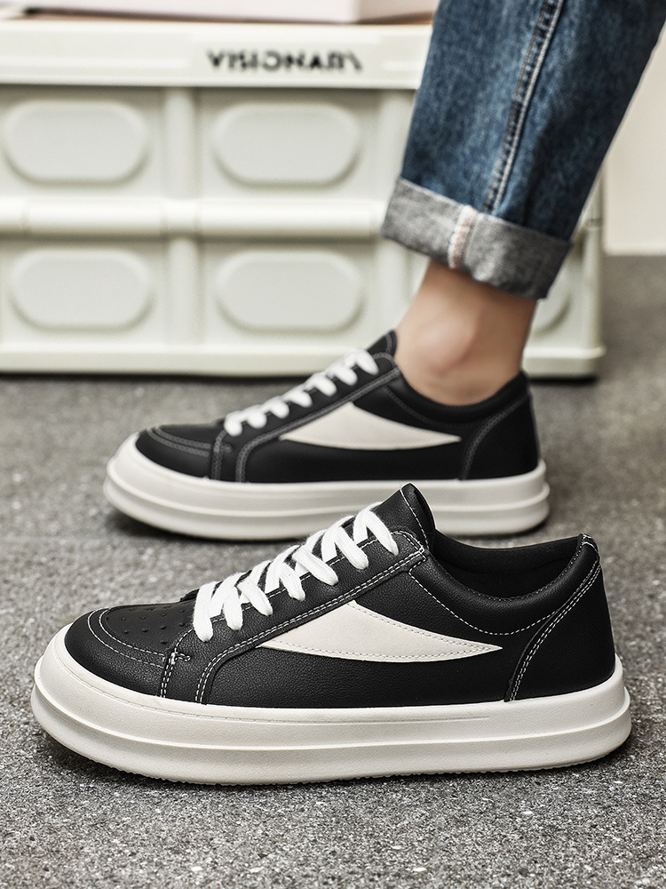 유행 잘 생긴 단순한 개성 흑백 컬러 매칭 봄 2025 영국 스타일 올 매치 스포츠 캐주얼 남성 신발 스케이트 신발스토어 가기