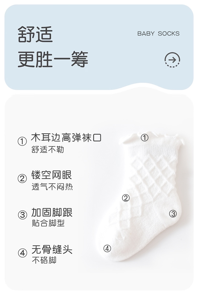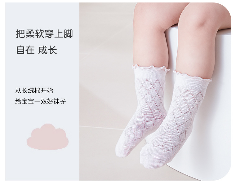 Sunseeker Yujia 봄과 여름 새로운 아기 양말 클래스 솔리드 컬러 빗 코튼 우드 이어 엣지 미들 튜브 아이들의 뼈없는 통기성 양말