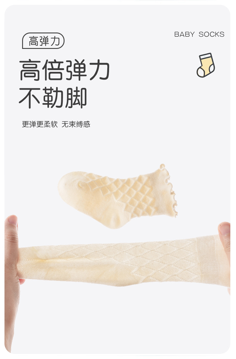 Sunseeker Yujia 봄과 여름 새로운 아기 양말 클래스 솔리드 컬러 빗 코튼 우드 이어 엣지 미들 튜브 아이들의 뼈없는 통기성 양말스토어 가기