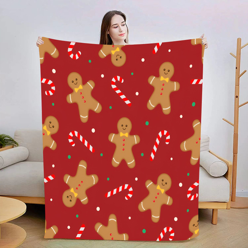 대외 무역 아마존 국경 디지털 인쇄 플란넬 담요 크리스마스 진저 브레드 맨 담요 양면 양털 담요