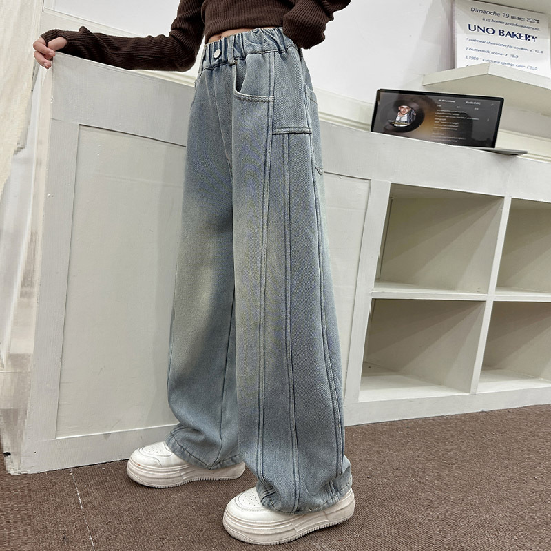 소녀 바지 어린이 봄과 가을 새로운 여자 어린이 의류 소녀 짠 바지 캐주얼 데님스토어 가기