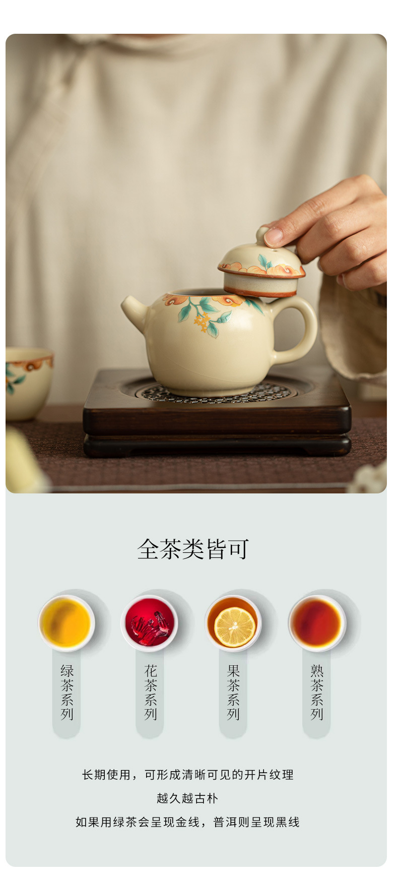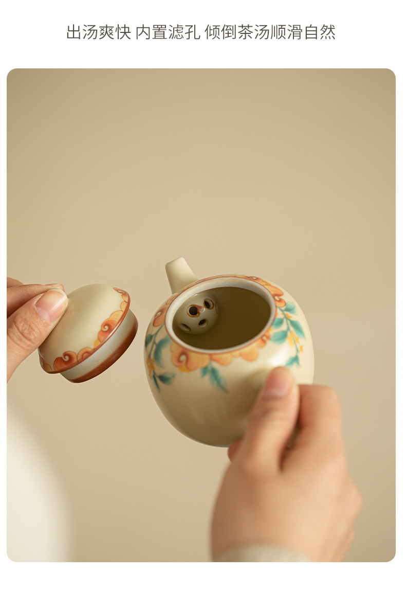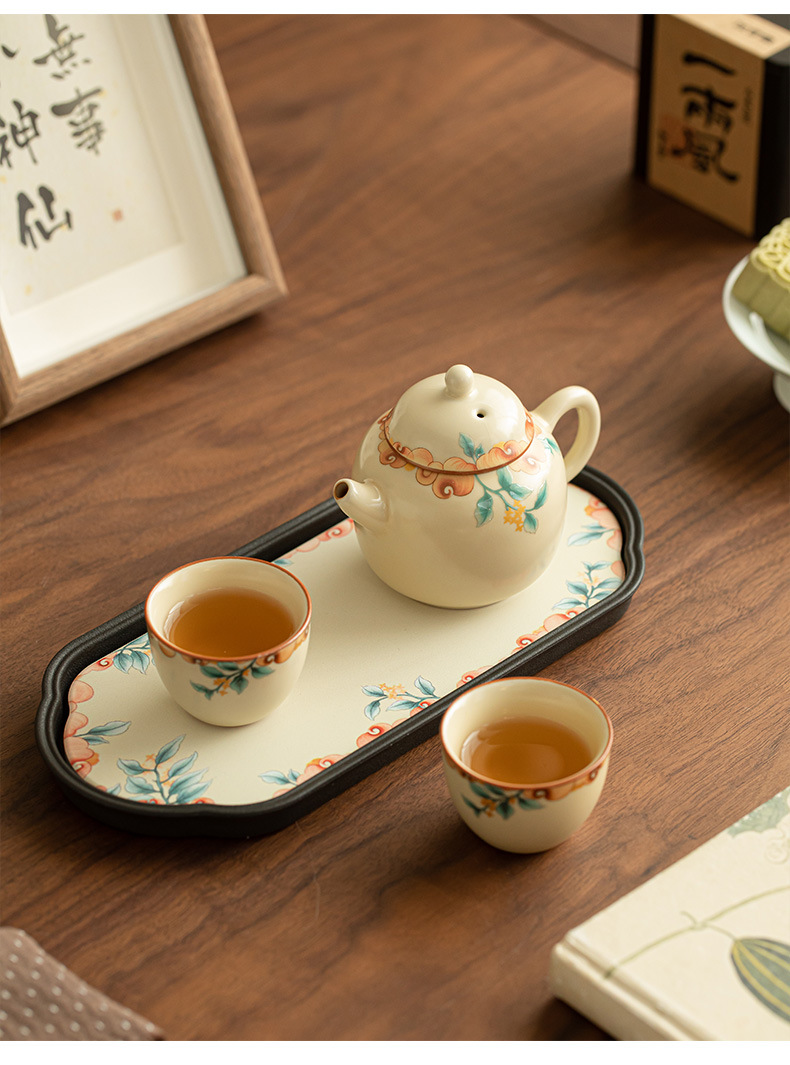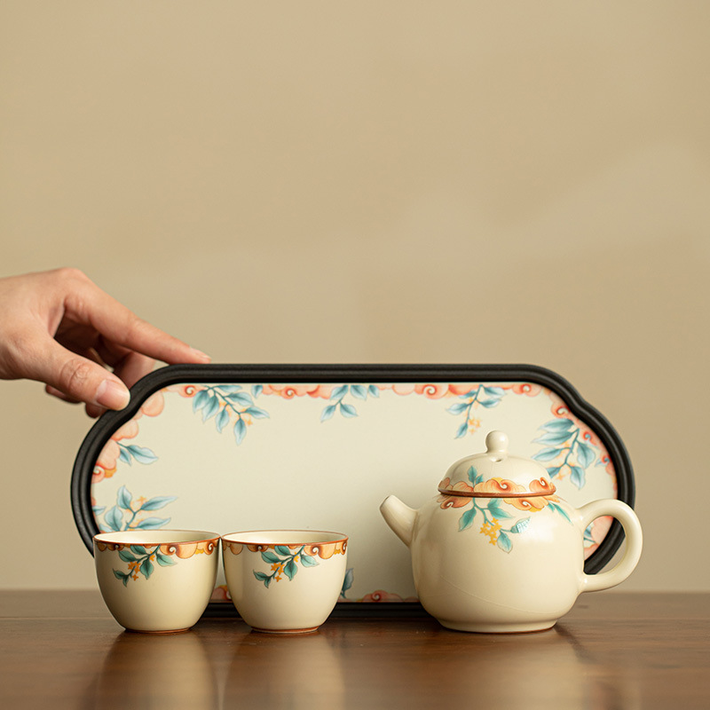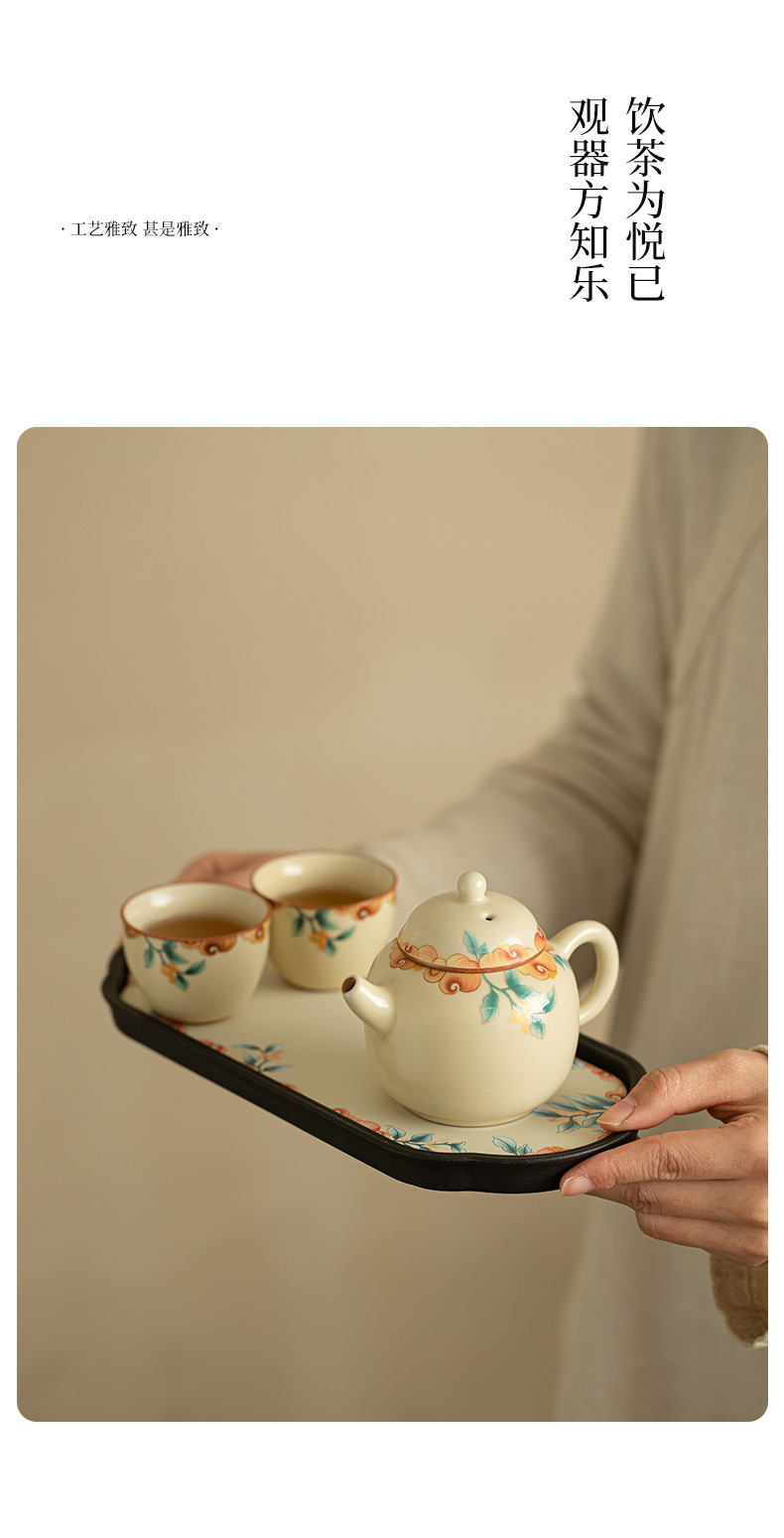 Jingdezhen Ruyao 오픈 주전자 찻잔 차 트레이 세트 세라믹 차 세트 홈 야외 주전자 티컵 세트스토어 가기