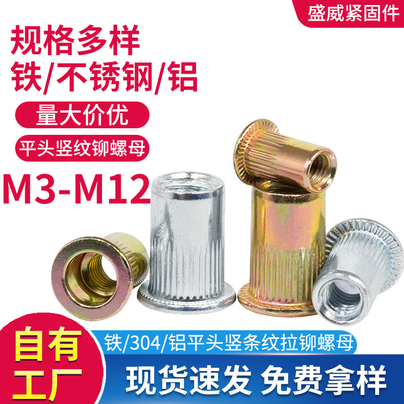 304 스테인레스 스틸 리벳 너트 플랫 헤드 내부 실 M3-M12 구멍 너트 플랫 헤드 수직 그레인 리벳 너트를 통해스토어 가기