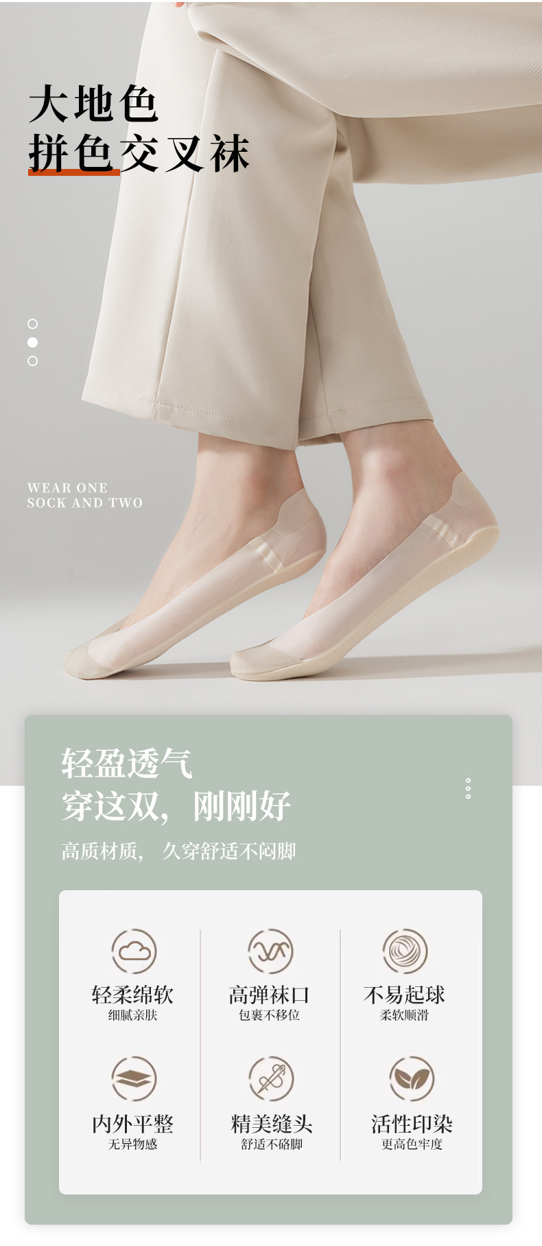 지구 색상 왼쪽과 오른쪽 크로스 여성 보트 양말 봄과 여름 통기성 면 바닥 얼음 실크 보이지 않는 양말 얇은 얕은 양말스토어 가기