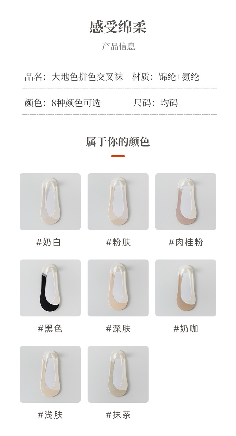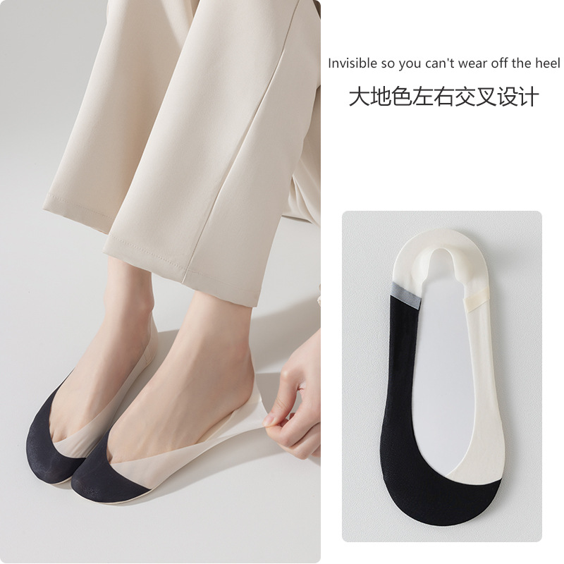 지구 색상 왼쪽과 오른쪽 크로스 여성 보트 양말 봄과 여름 통기성 면 바닥 얼음 실크 보이지 않는 양말 얇은 얕은 양말