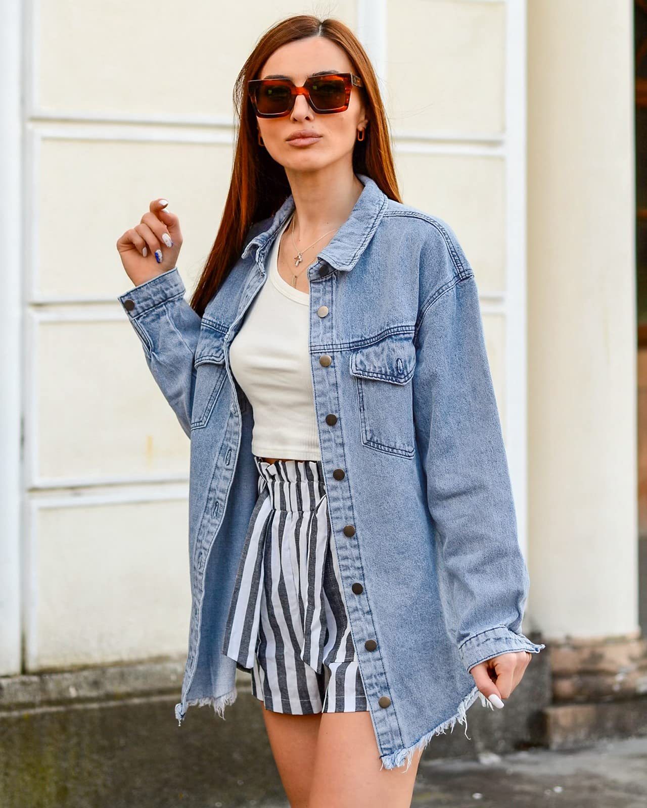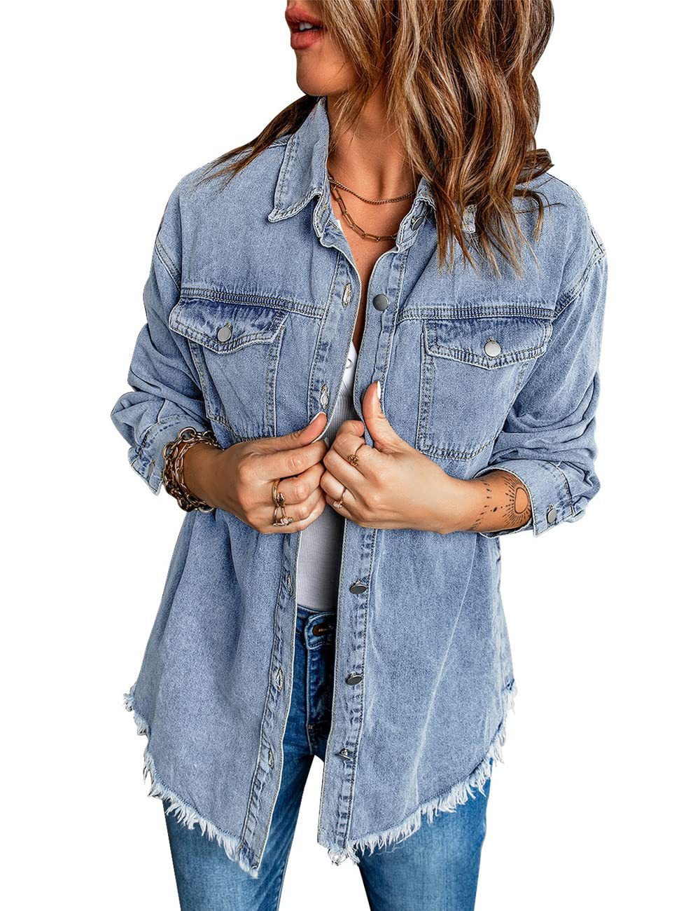 유럽과 미국 국경 무역 eBay 아마존 새로운 데님 재킷 라이트 패션 데님 코트 여성 버튼 셔츠스토어 가기