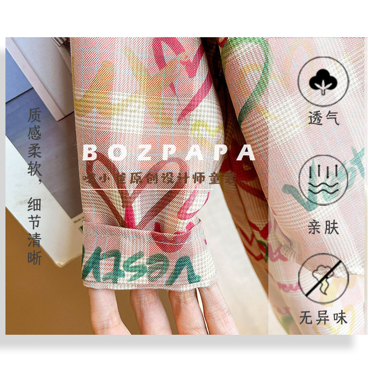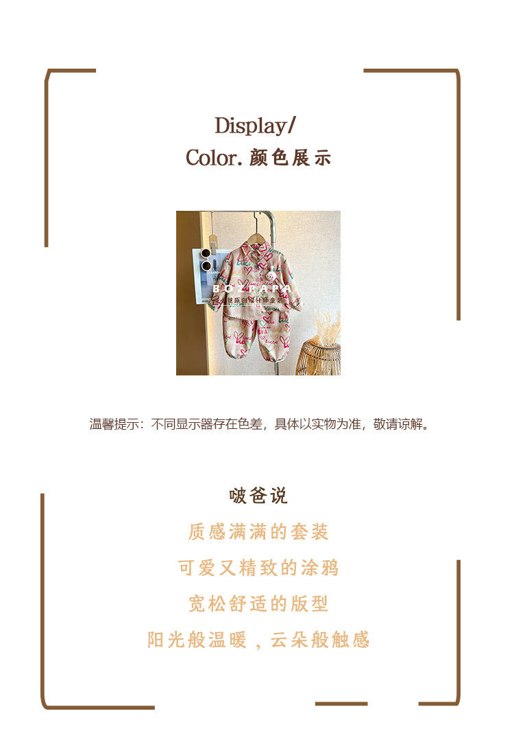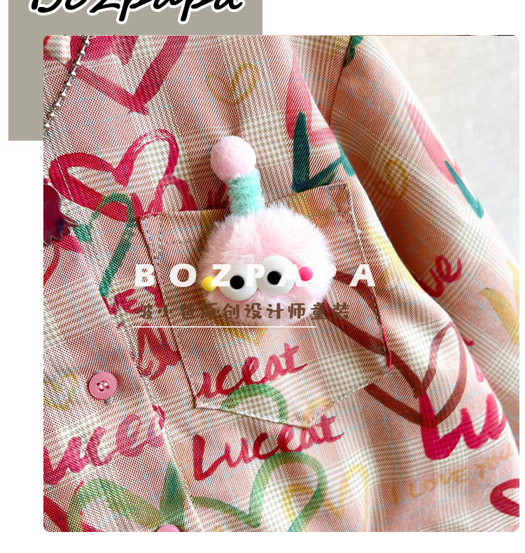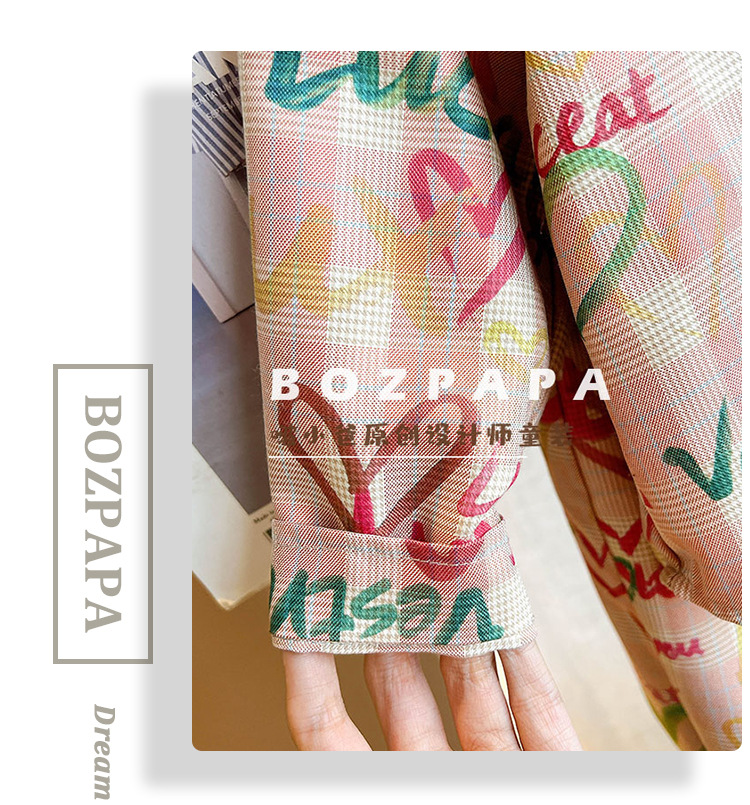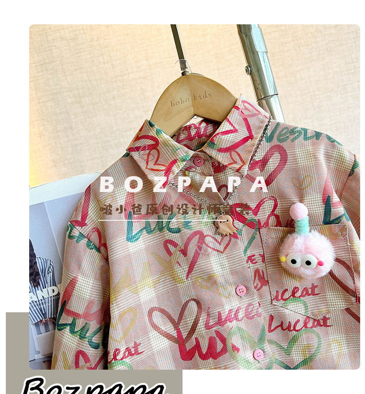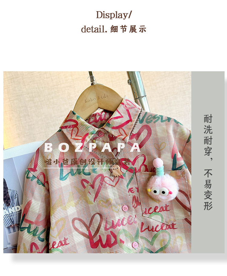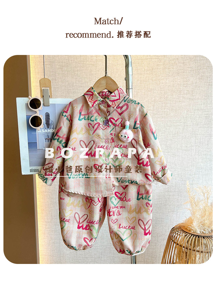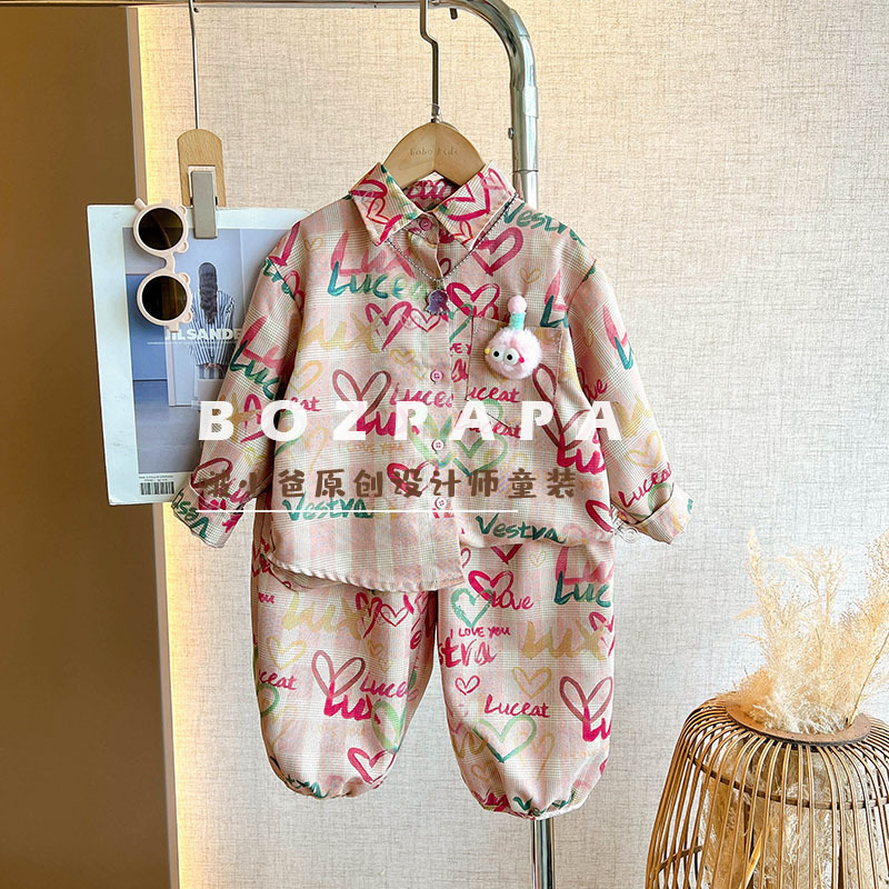 2025 봄과 가을 새로운 소년 격자 무늬 낙서 세트 어린이 아기 핑크 사랑 셔츠 캐주얼 세트스토어 가기
