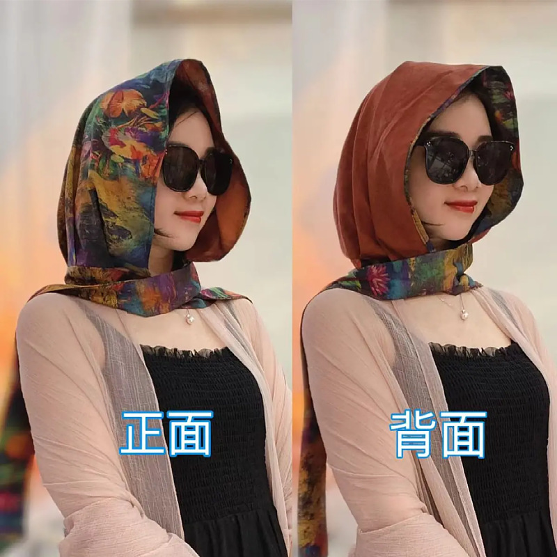 코코아 스카프 양면 꽃 장미 스카프 모자 패션 스카프 선스크린 그늘 머리 스카프 봄과 여름 여행 사진