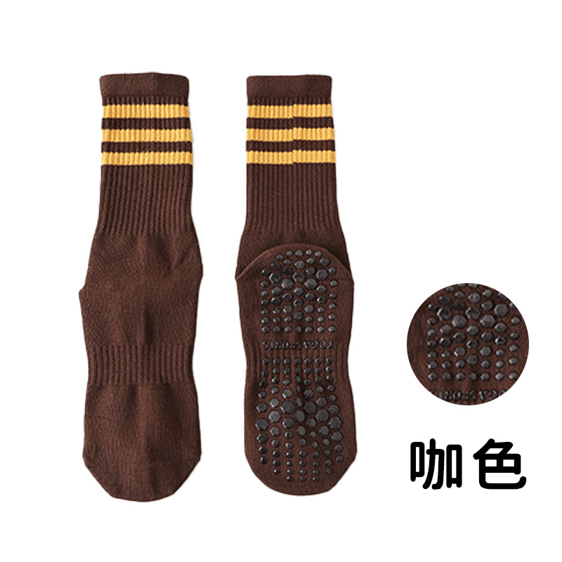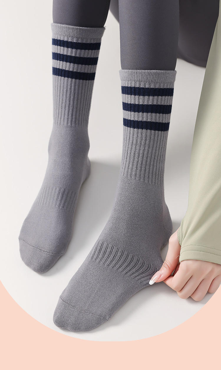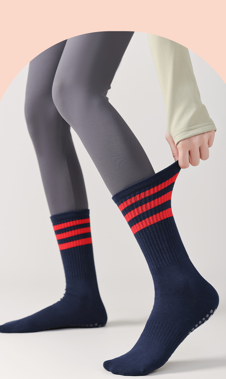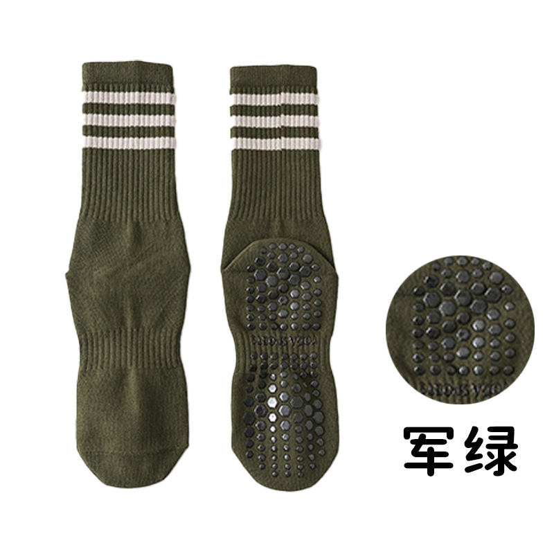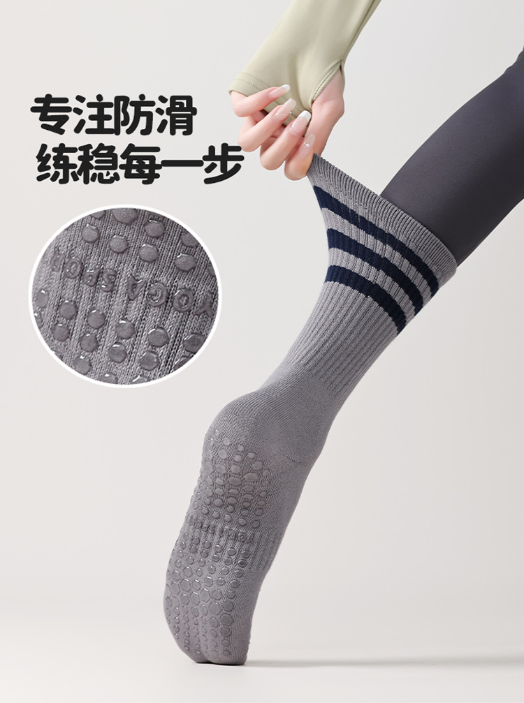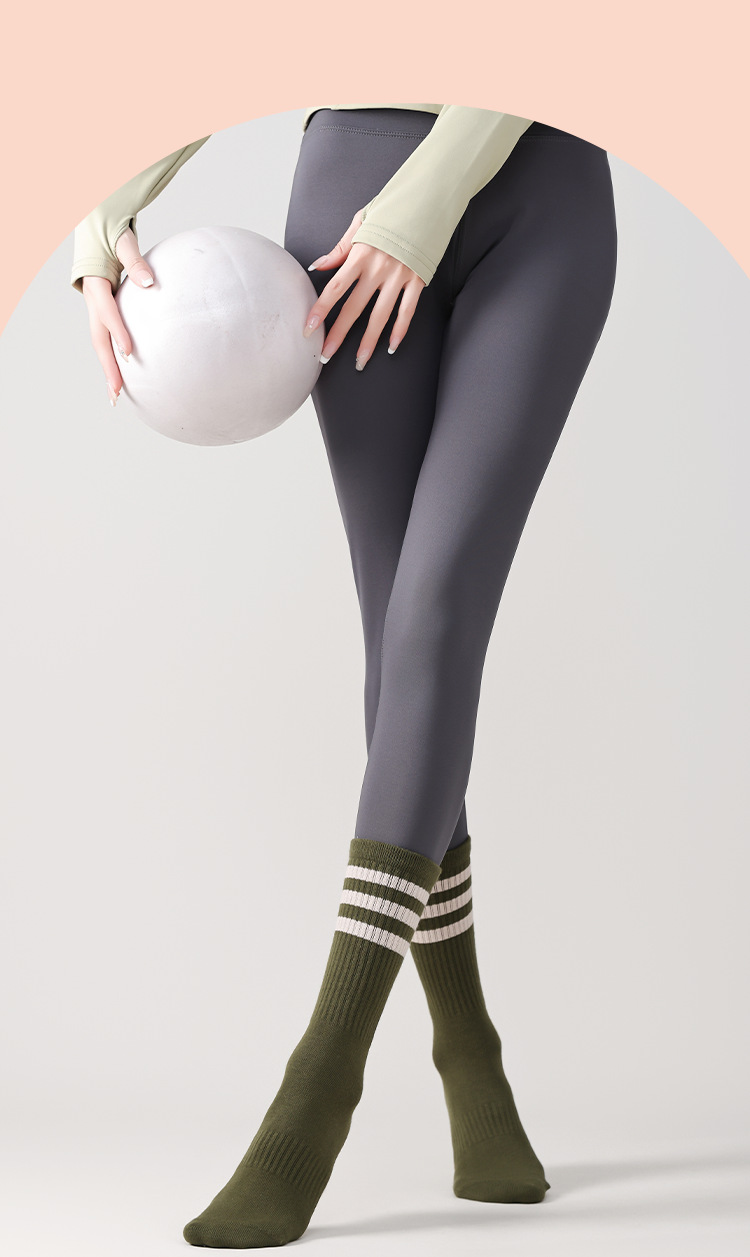 전문 요가 양말 여성 면 양말 중간 길이 양말 가을과 겨울 두꺼운 실리콘 미끄럼 방지 스포츠 양말 피트니스 필라테스 스타킹
