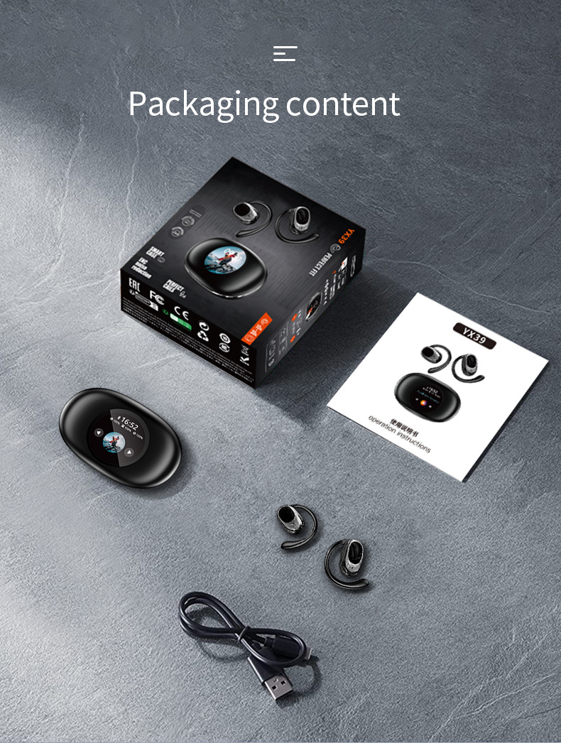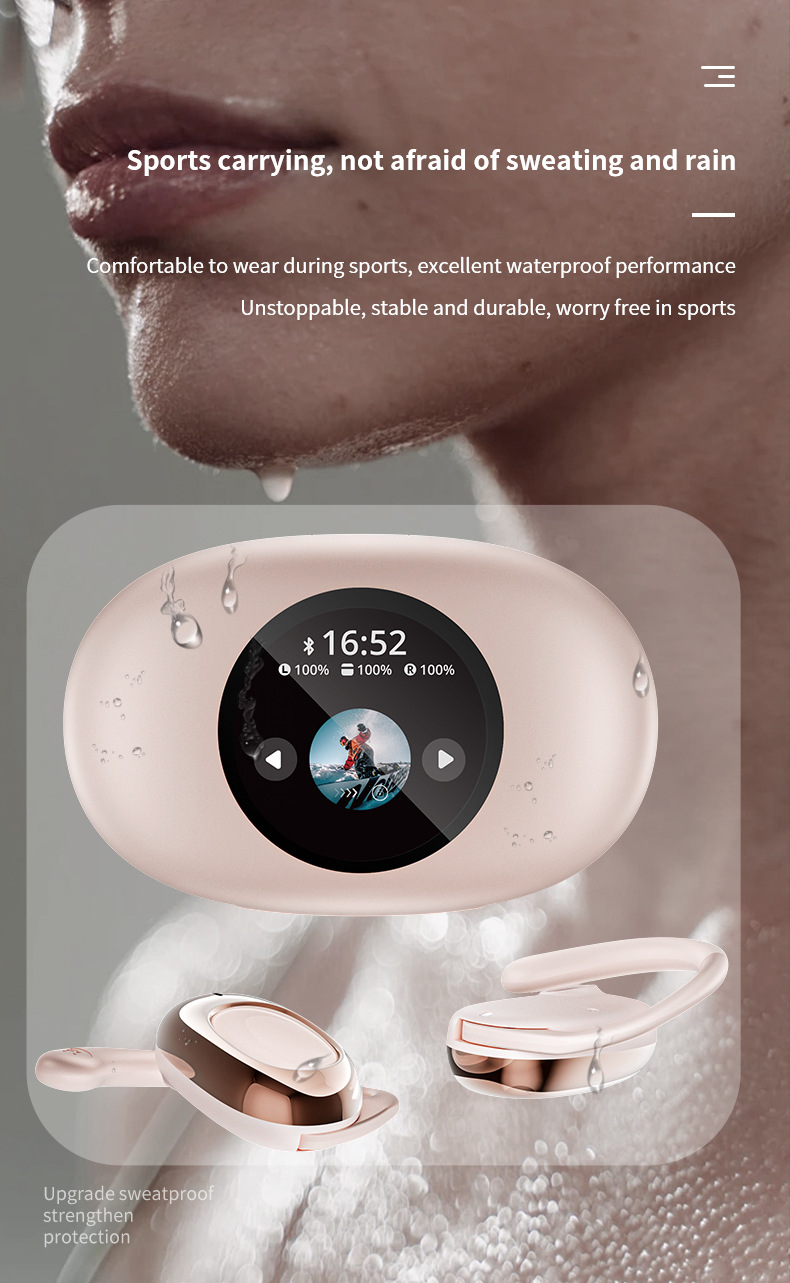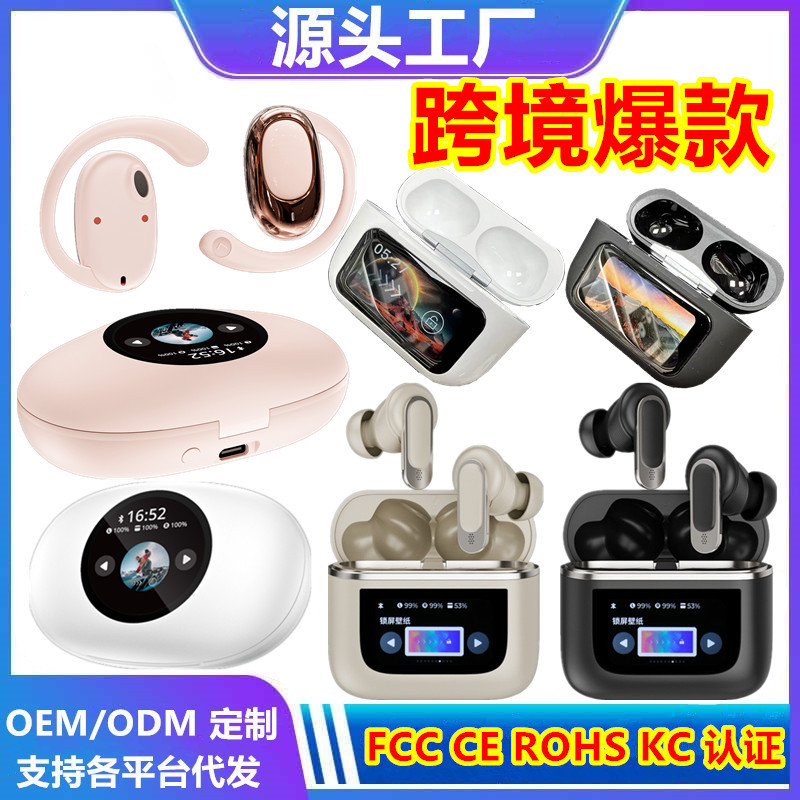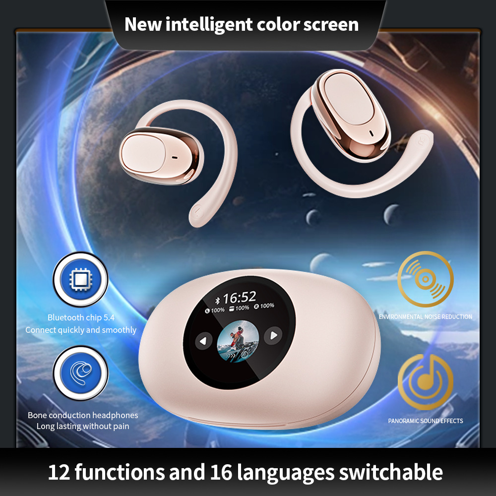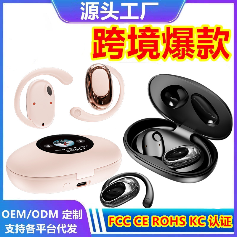 跨境私模开放挂耳式LCD屏运动耳机全彩触屏 OWS蓝牙耳机ANC智能屏