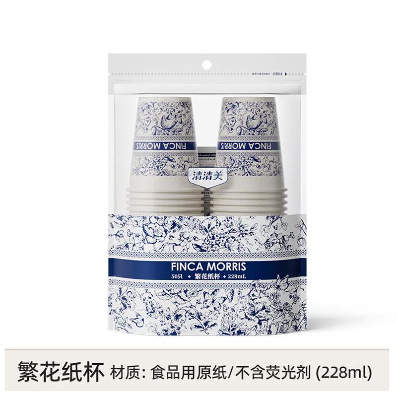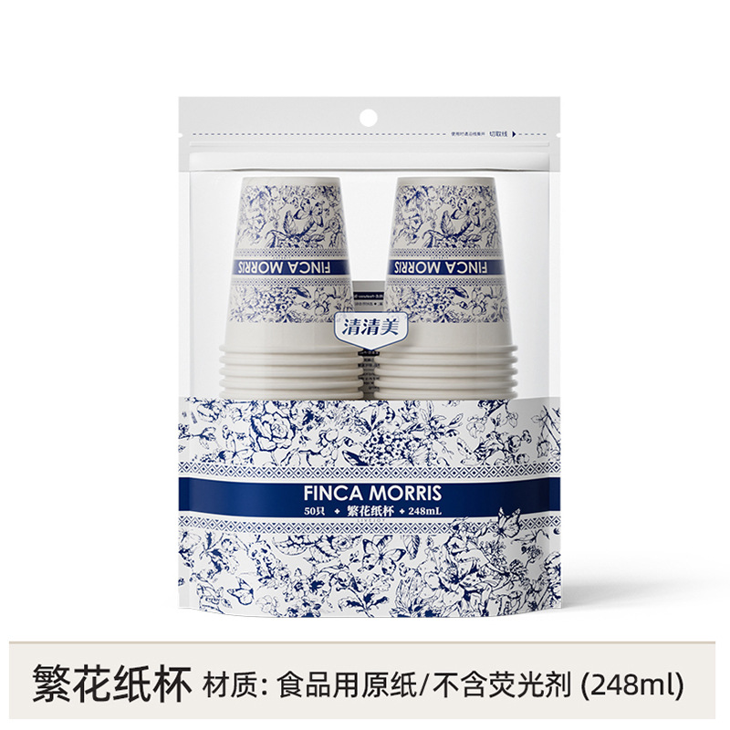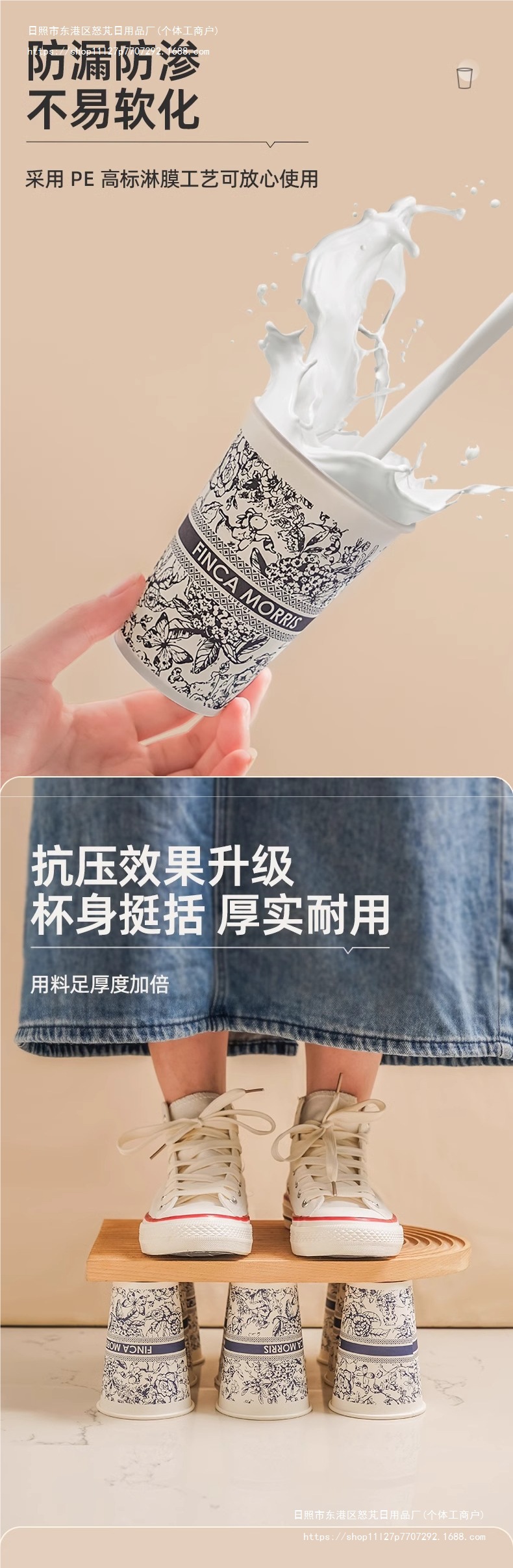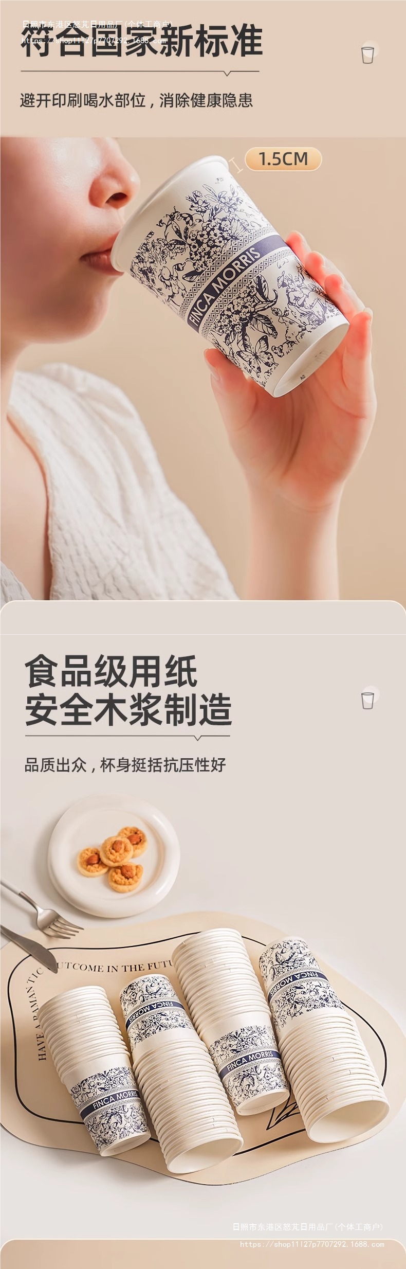 Qingqingmei 일회용 종이컵 Fanhua 컵 가정용 두꺼운 경화 방지 대형 커피 음료 수은 분노스토어 가기