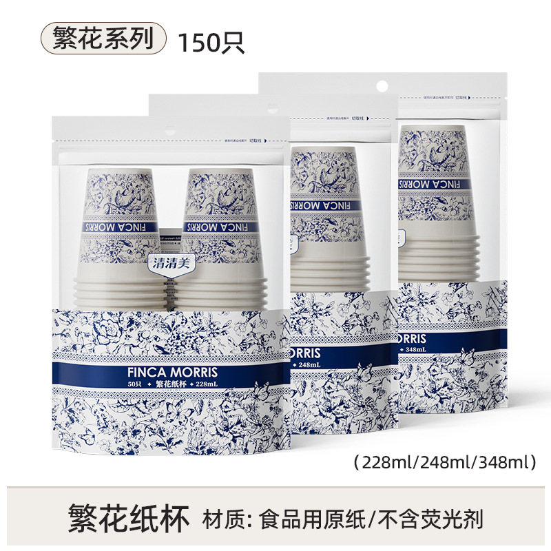 Qingqingmei 일회용 종이컵 Fanhua 컵 가정용 두꺼운 경화 방지 대형 커피 음료 수은 분노