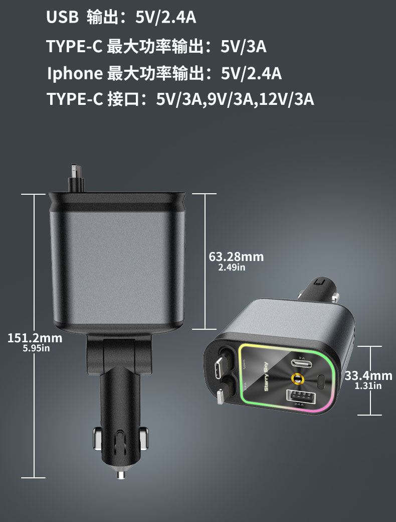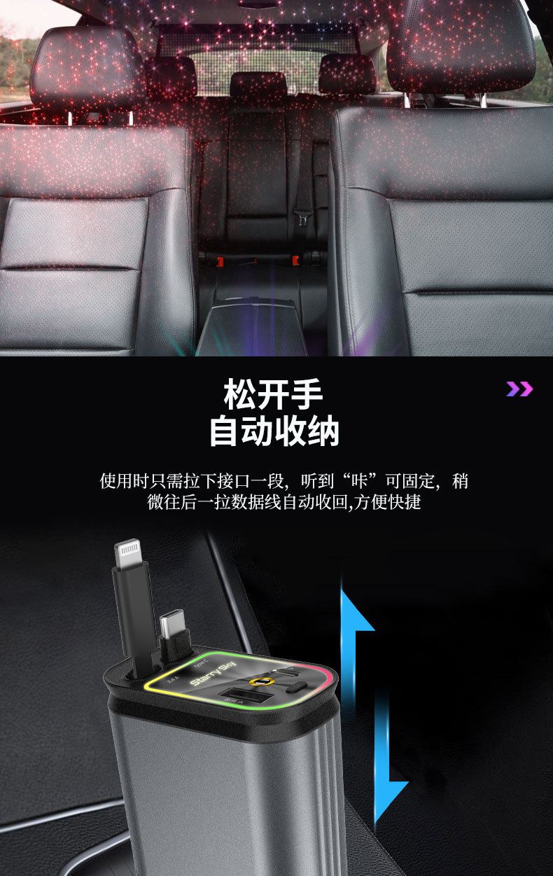 스타 스카이 탑 프로젝션 램프 빠른 충전 120W 자체 포함 텔레스코픽 라인 자동차 충전기 1 ~ 4 개의 다기능 디지털 디스플레이 자동차 충전기