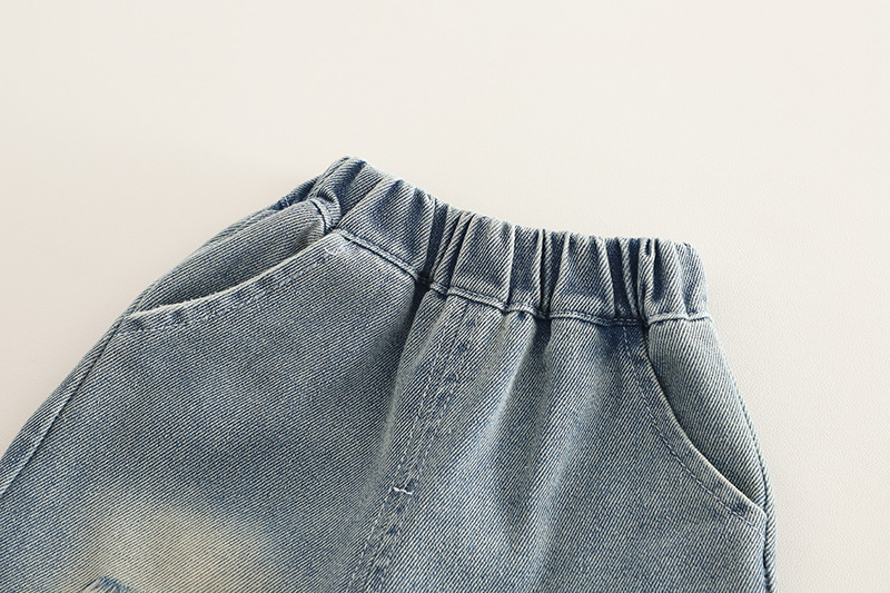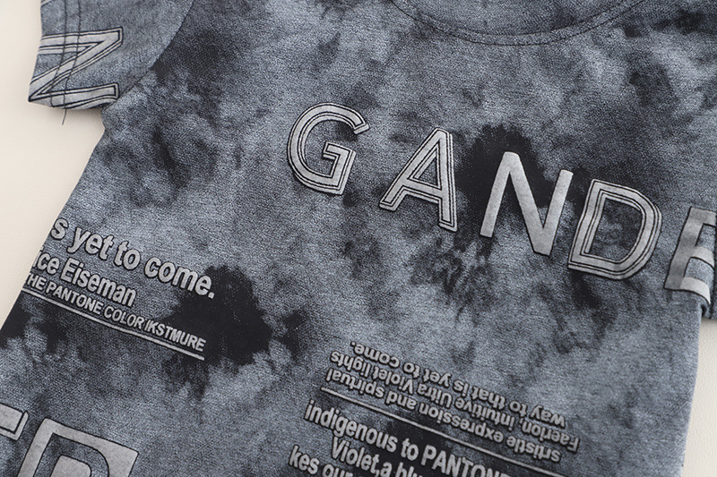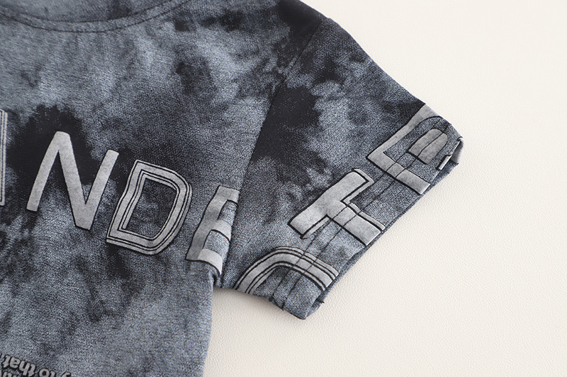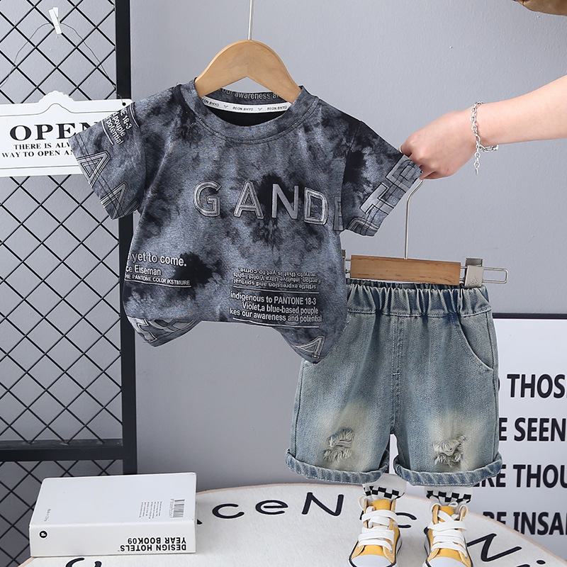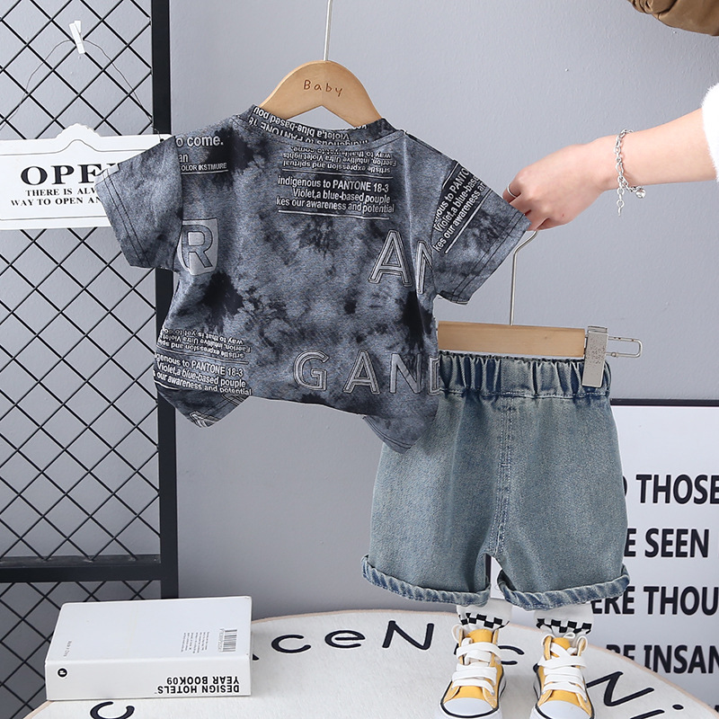 2025 년 여름 뉴 보이즈 전체 인쇄 폼 레터 반팔 세트 투피스 캐주얼 데님 반바지