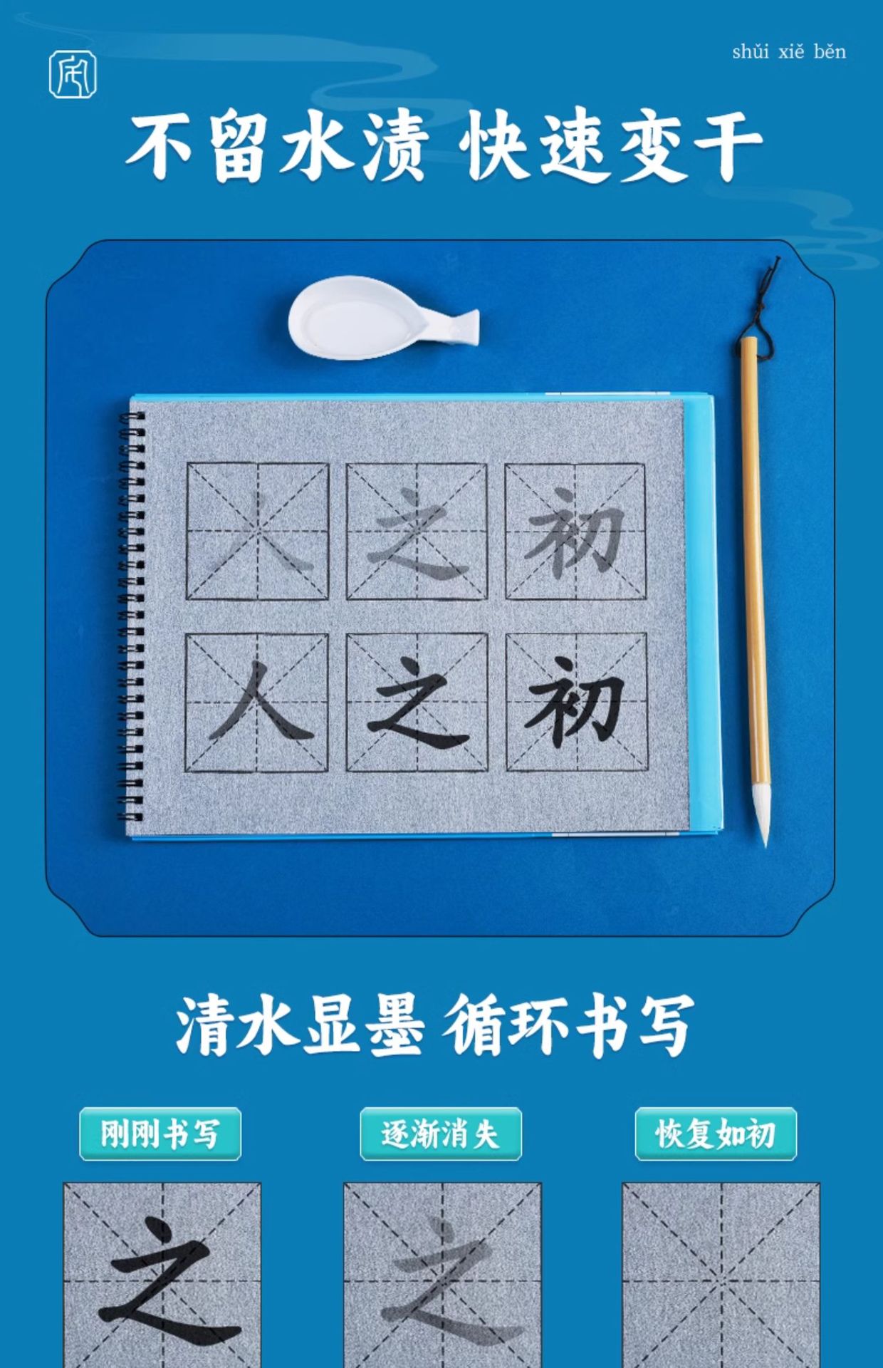 물 쓰기 책 서예 10cm 쌀 문자 그리드 물 쓰기 책 초보자 서예 연습 초등학생 3 년