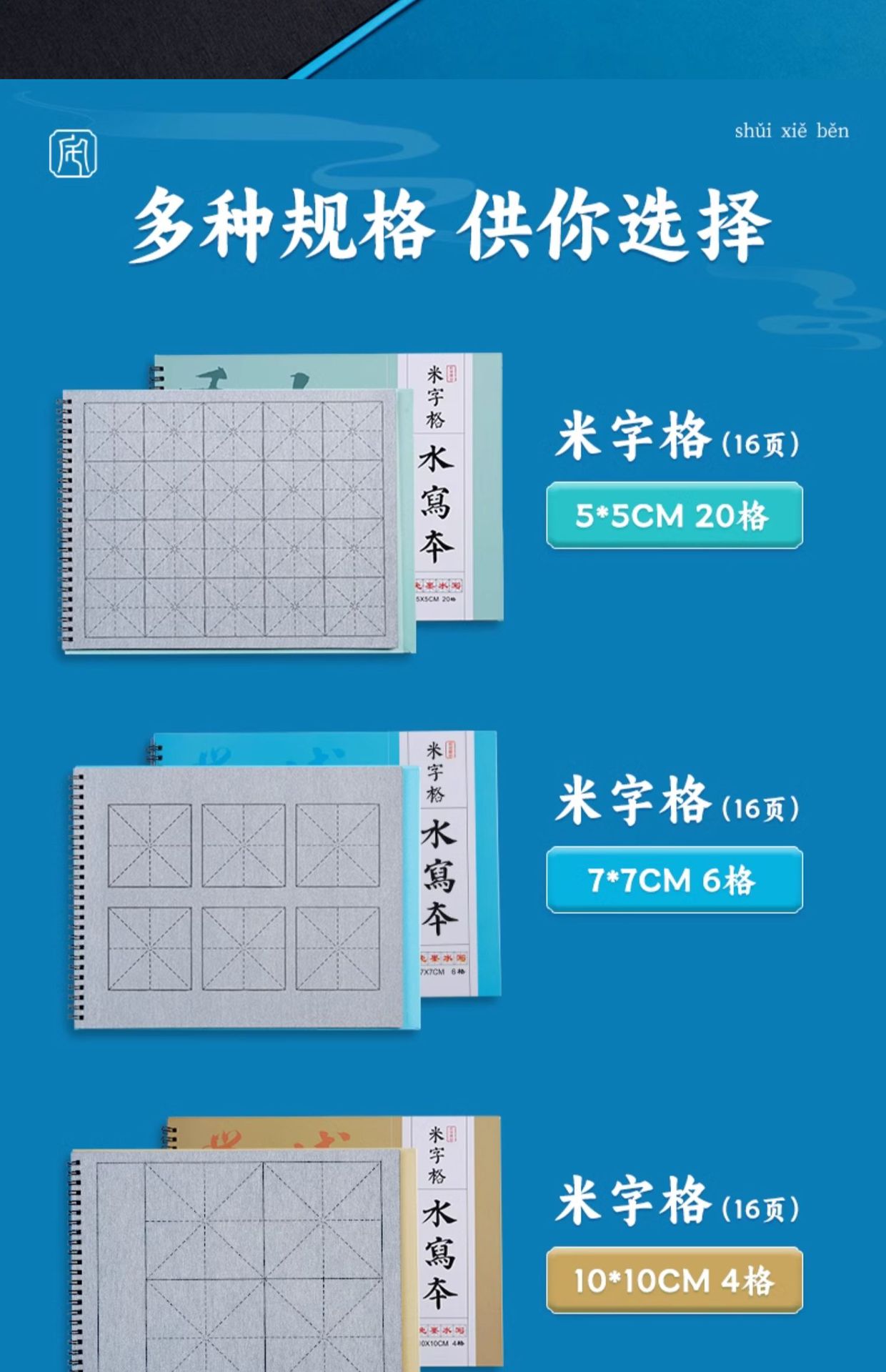 물 쓰기 책 서예 10cm 쌀 문자 그리드 물 쓰기 책 초보자 서예 연습 초등학생 3 년스토어 가기