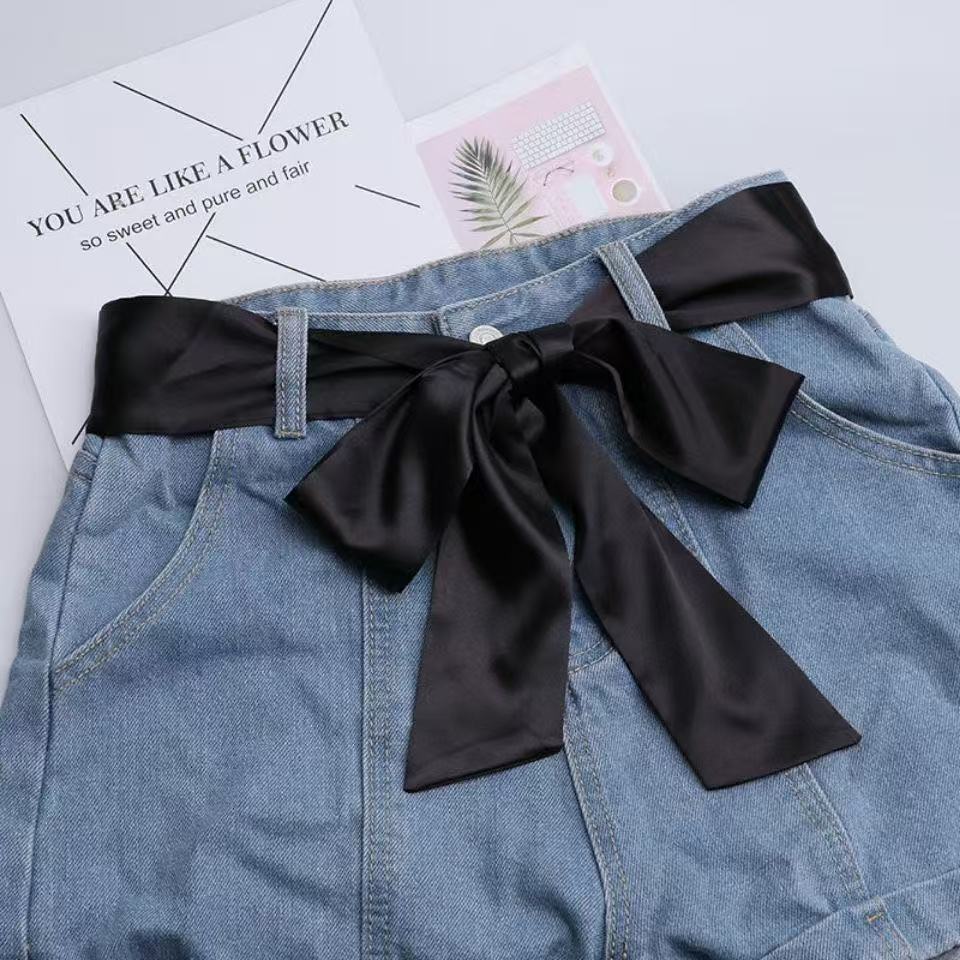 단색 얇은 좁은 긴 스카프 여성 스파이스 소녀 스타일 블랙 작은 스카프 긴 흰색 벨트 Y2K 스타일 헤어 리본스토어 가기