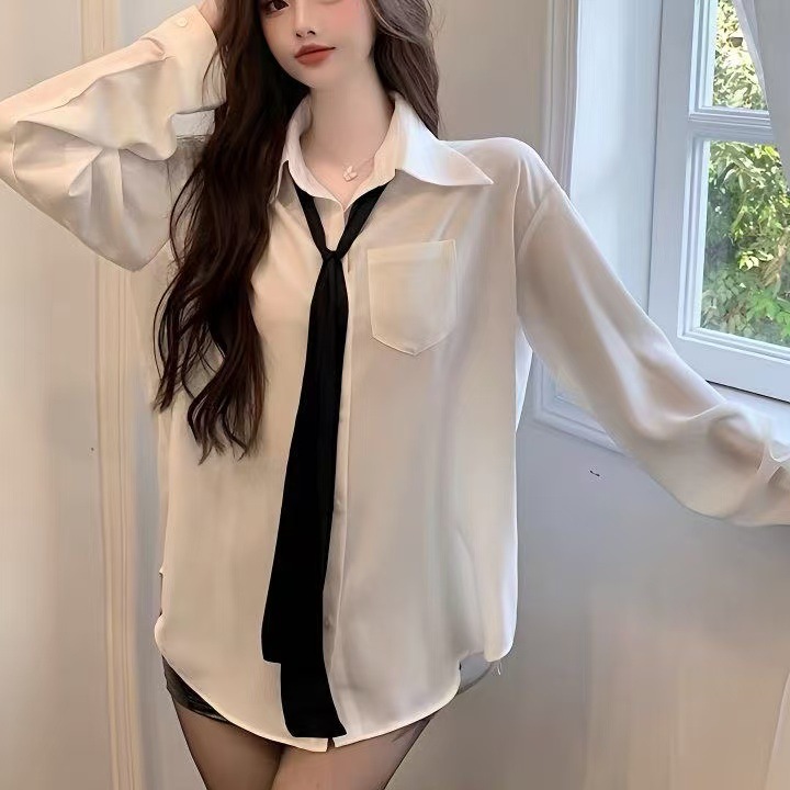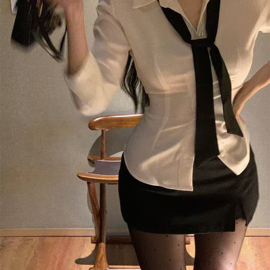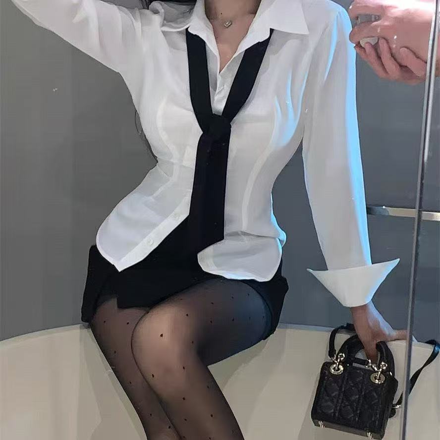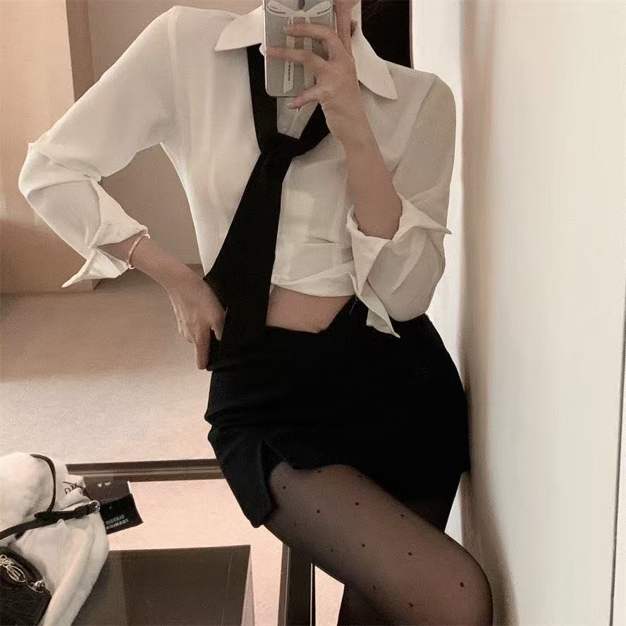 단색 얇은 좁은 긴 스카프 여성 스파이스 소녀 스타일 블랙 작은 스카프 긴 흰색 벨트 Y2K 스타일 헤어 리본