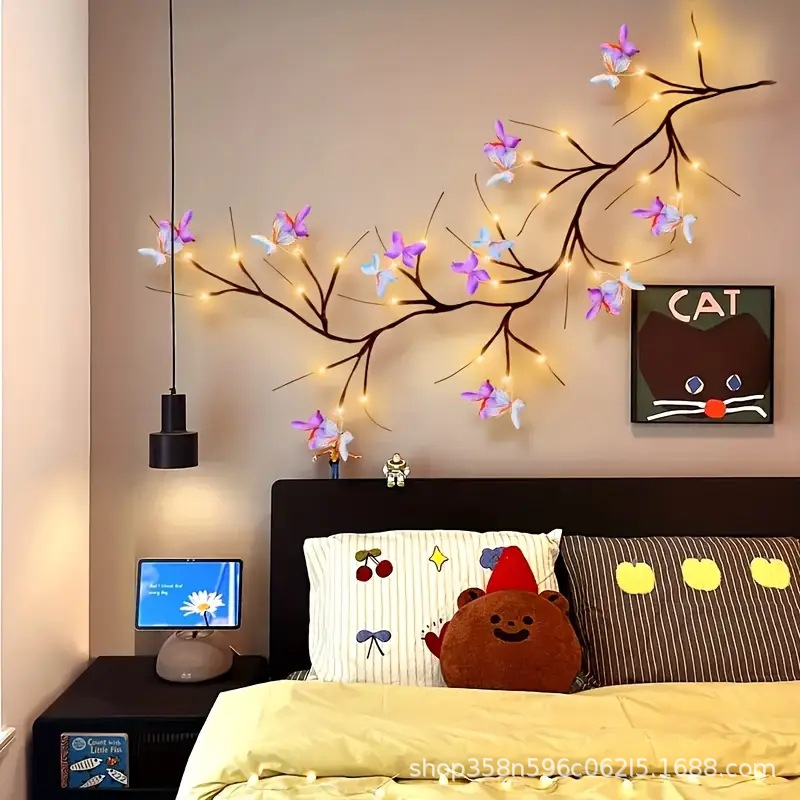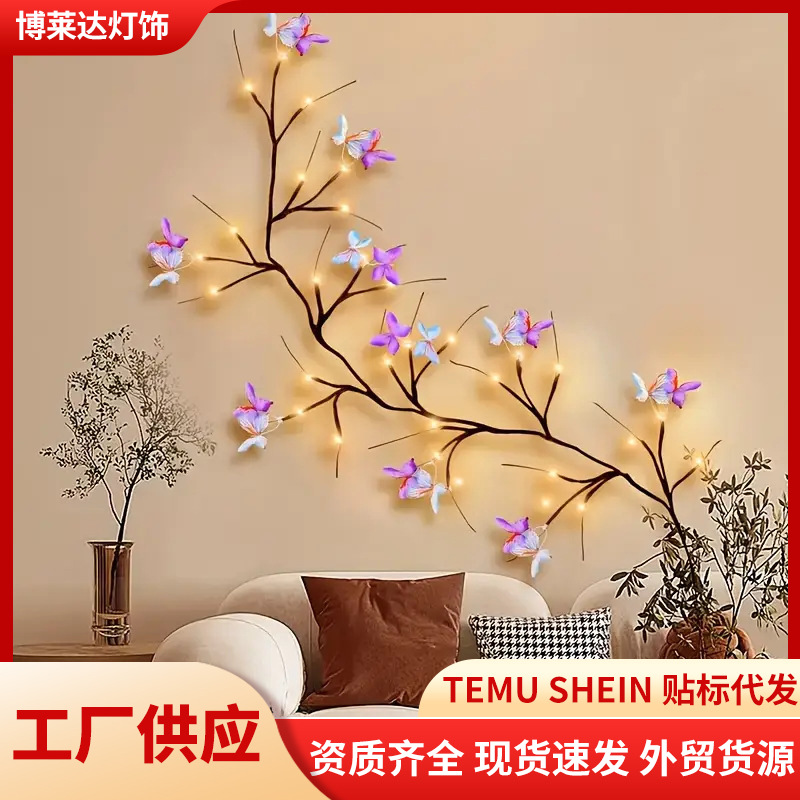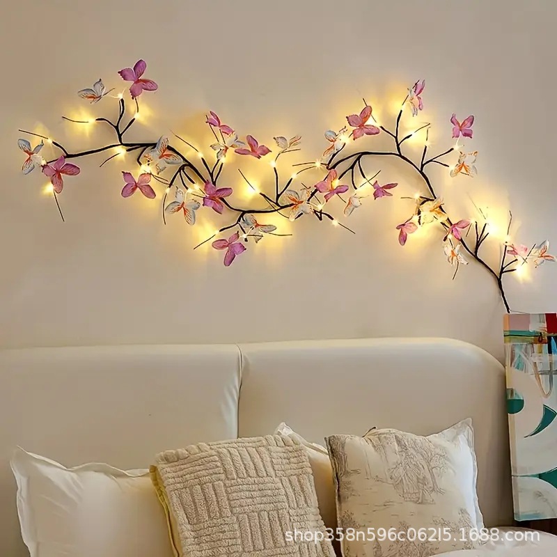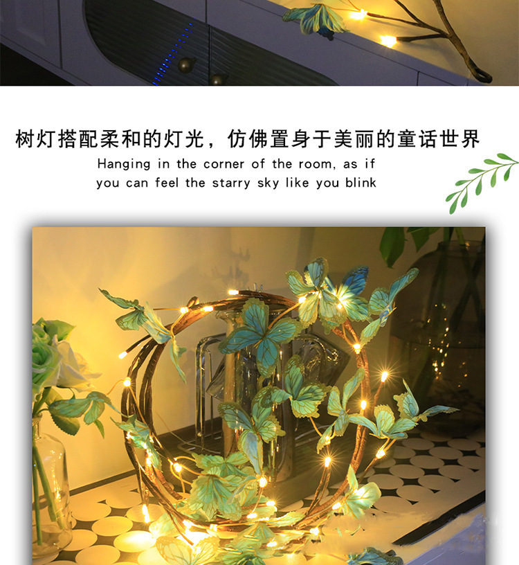 새로운 실내 분위기 빛 침실 벽 스티커 장식 빛 LED 나비 잎 등나무 지점 라이트 문자열 재고 도매스토어 가기