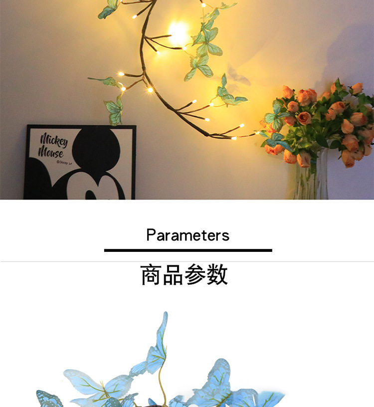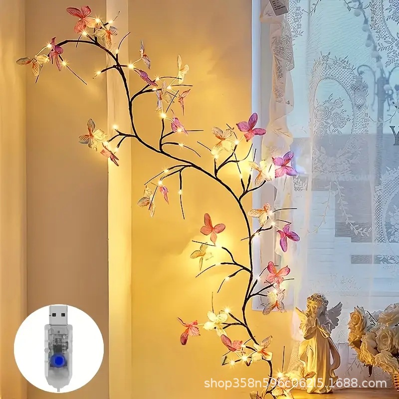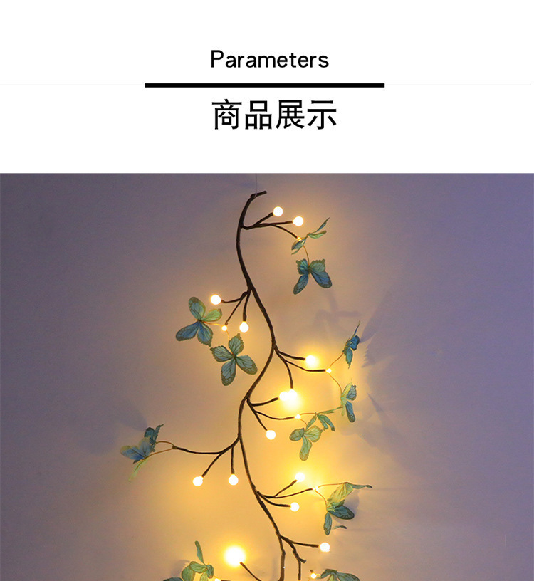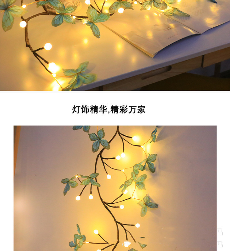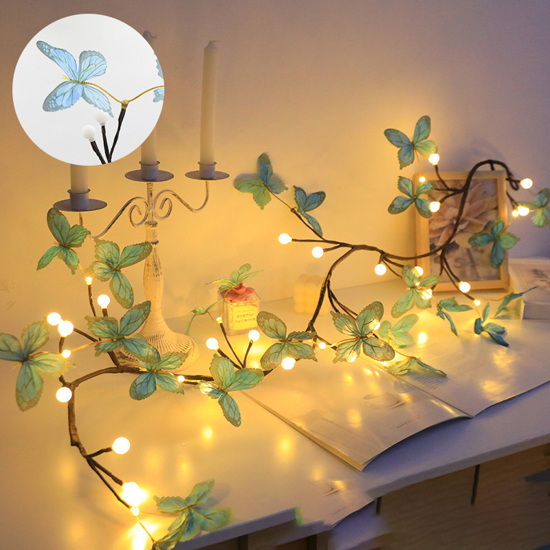 새로운 실내 분위기 빛 침실 벽 스티커 장식 빛 LED 나비 잎 등나무 지점 라이트 문자열 재고 도매