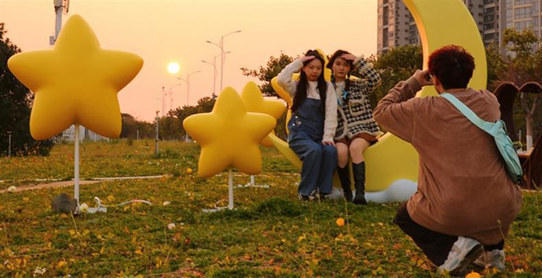 대형 달 사랑 유리 섬유 강화 플라스틱 빛나는 장식품 쇼핑몰 그물 붉은 사진 펀치 조각 부동산 명승지 장식