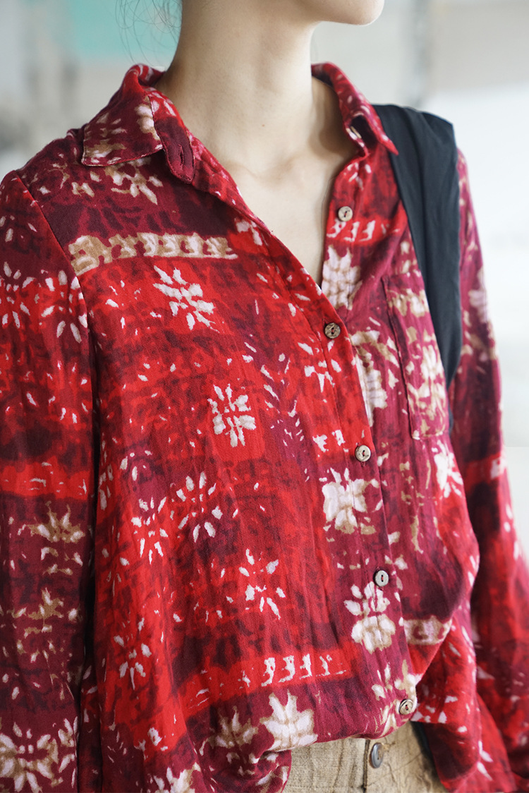 원래 캐주얼 향수 의상 인쇄 태국 코튼 셔츠 레트로 게으른 소프트 왁스 더블 코튼 슬림 탑 S2264
