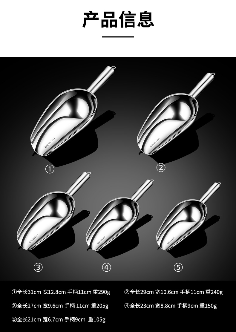 두꺼운 304 스테인레스 스틸 아이스 삽 쌀 삽 상업용 슈퍼마켓 곡물 삽 밀가루 삽 차 삽 음식 파는 삽스토어 가기
