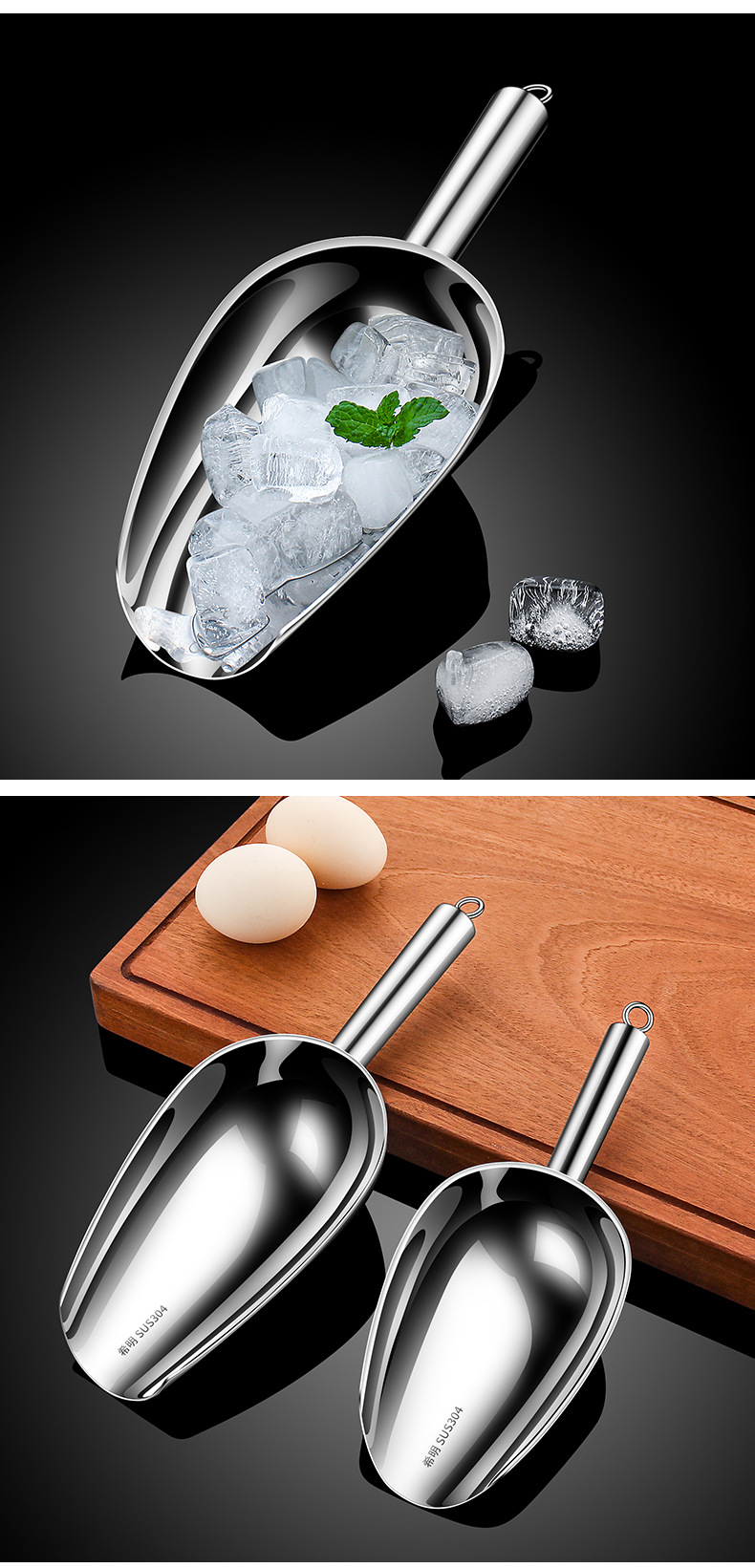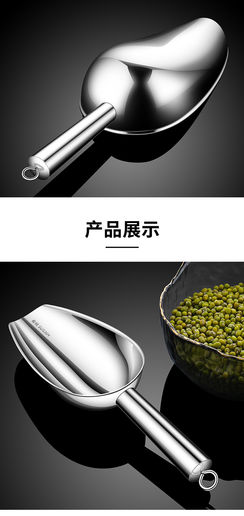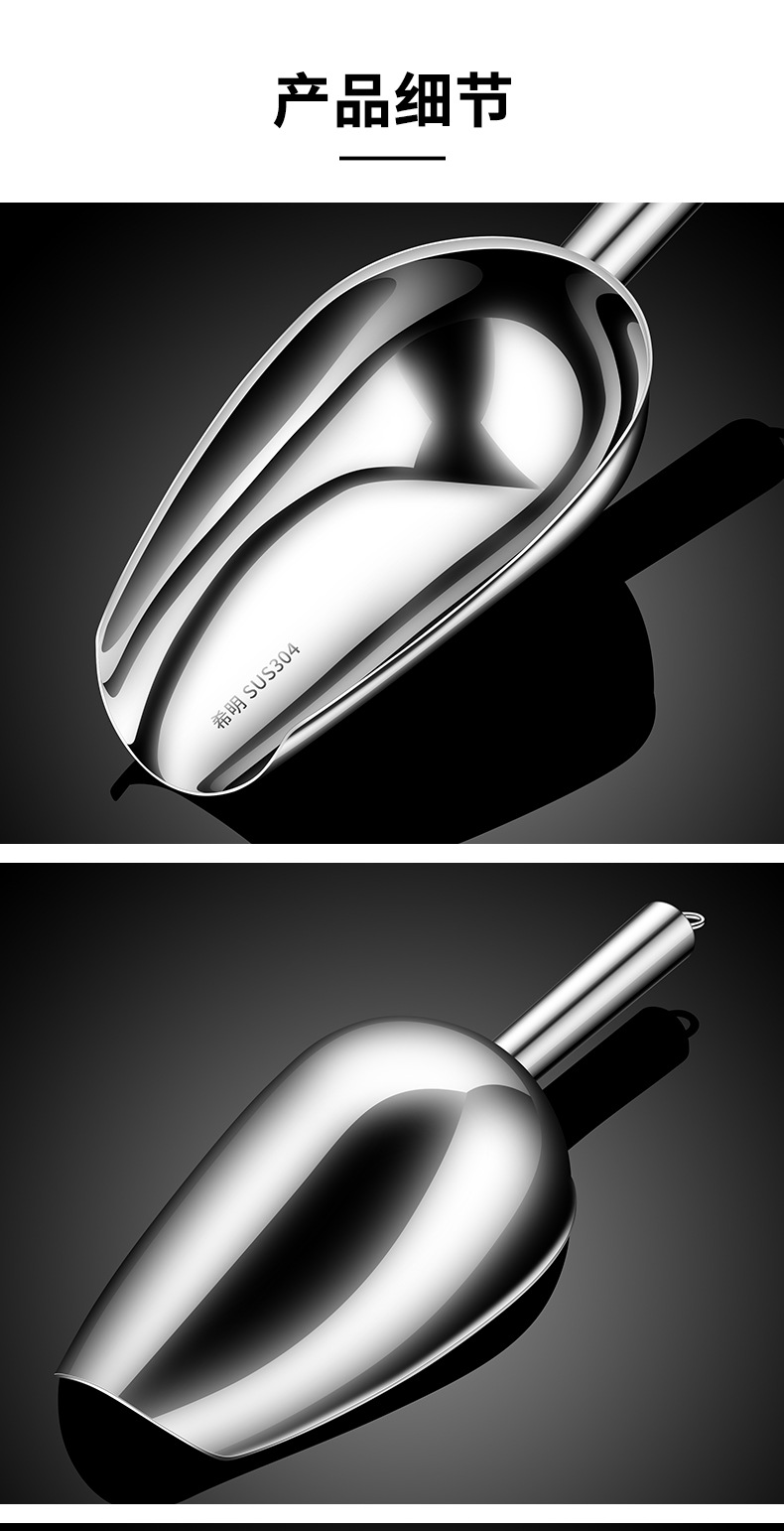 두꺼운 304 스테인레스 스틸 아이스 삽 쌀 삽 상업용 슈퍼마켓 곡물 삽 밀가루 삽 차 삽 음식 파는 삽
